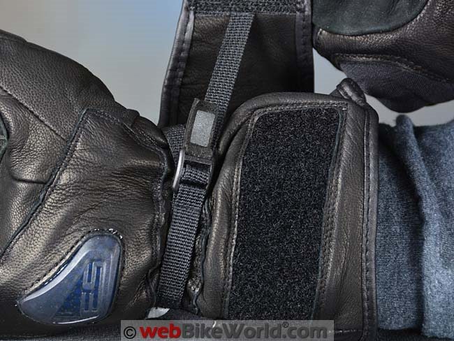 This tightens the gloves around the wrist very securely; we can’t pull the glove off with this system secured, which is excellent.