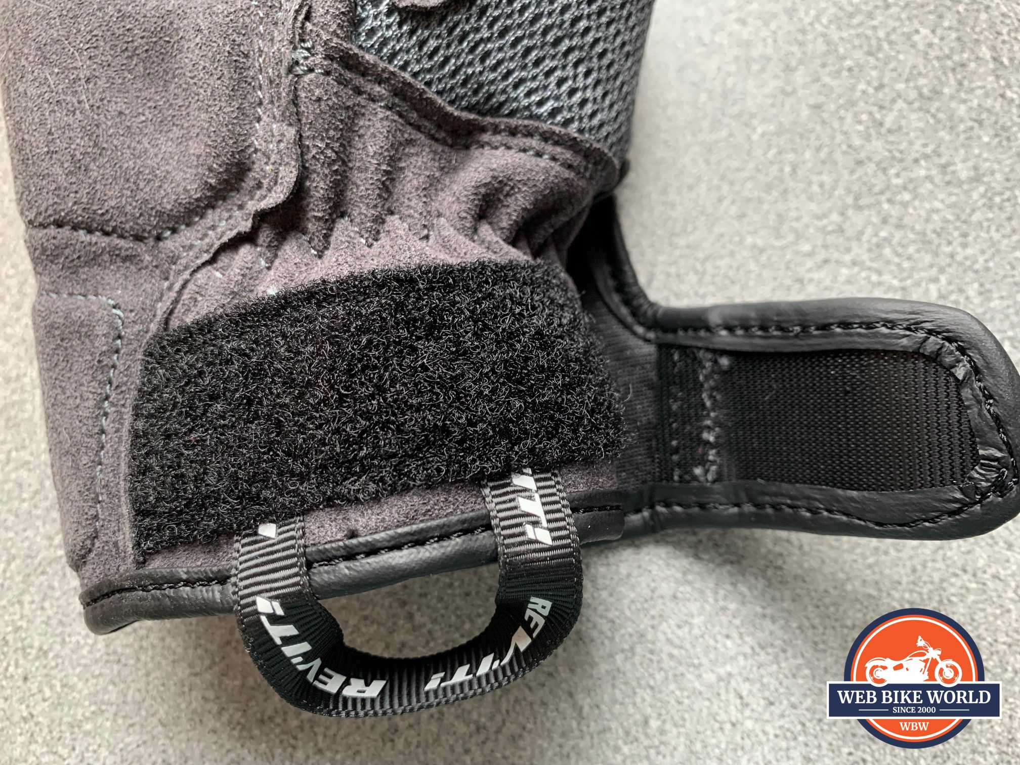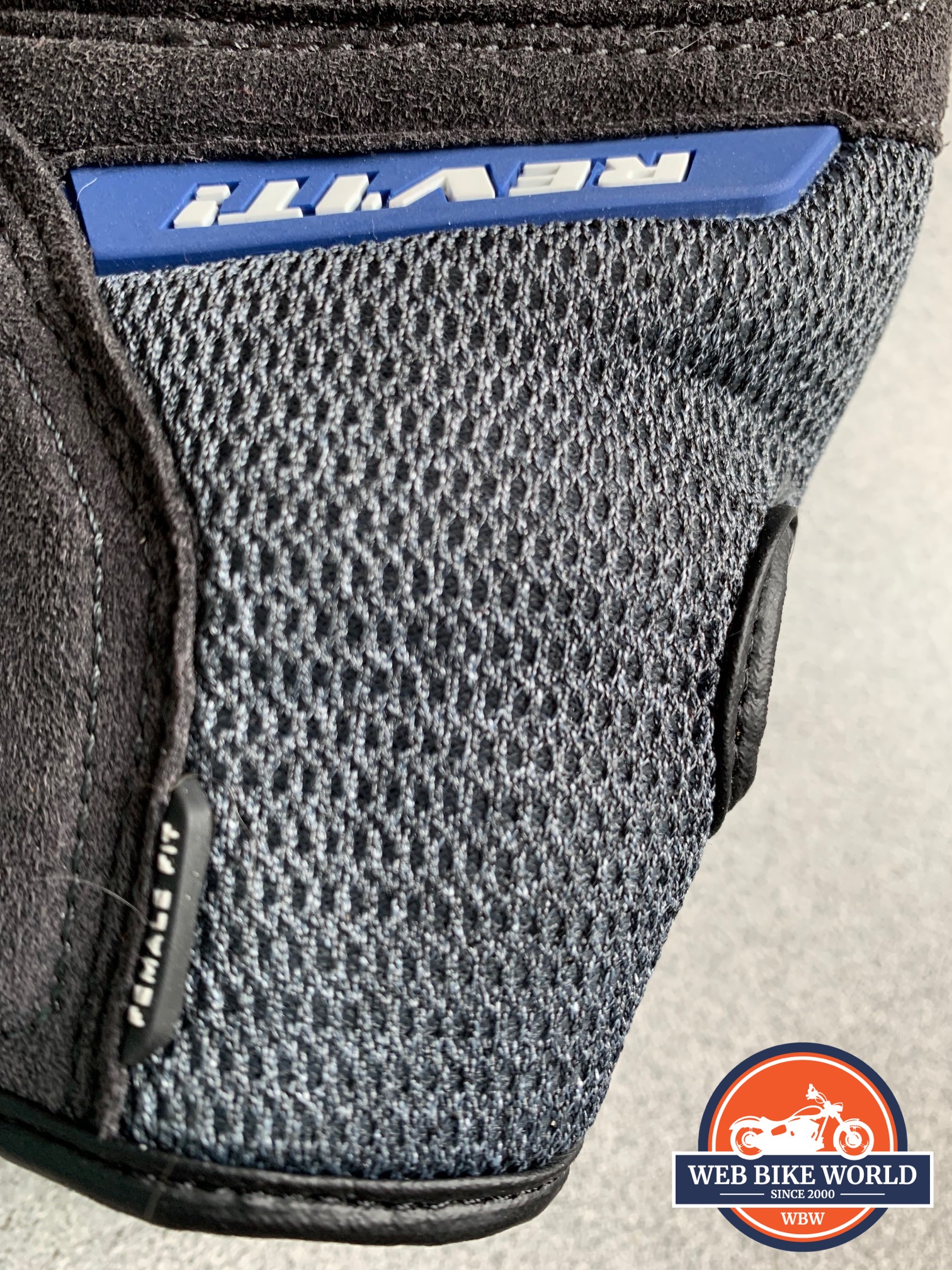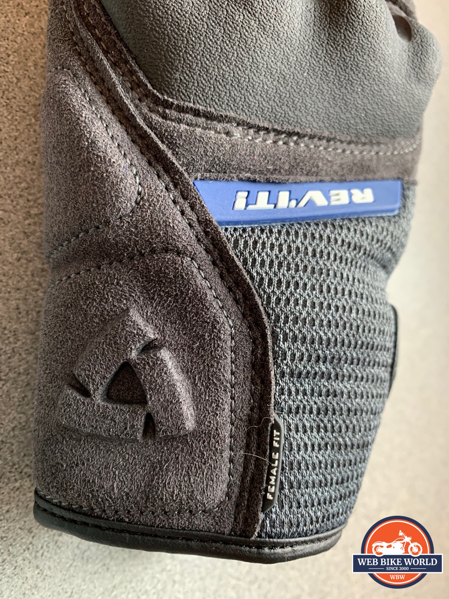 Branding is limited to a small blue strip below the knuckle protector with REV’IT! on it. It also appears on the pull strap. They include a stamped REV’IT! Logo on the cuff as well.