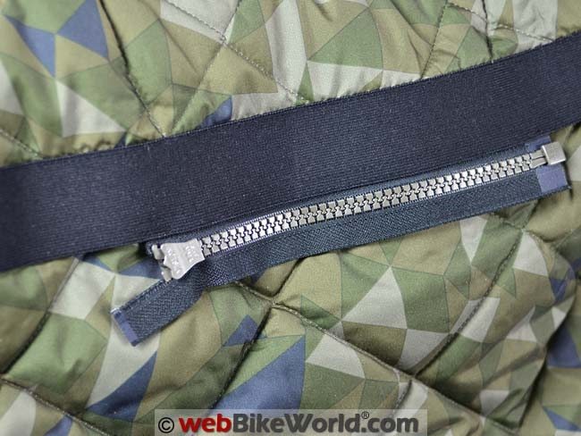 The Westport overshirt does not have the built-in loops for the REV’IT! HV Connector Vest (review), a retro-reflective removable outer vest for nighttime use. The vest can still be used, but it won’t stay connected to the overshirt when you take it off. Also, the non-removable slightly insulating and padded liner in the Westport overshirt has an interesting diamond-pattern camouflage that actually looks like a pretty good camouflage pattern!
