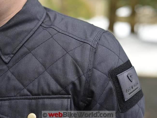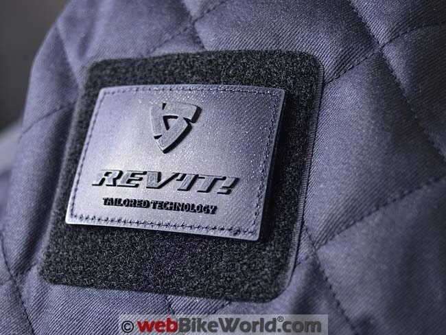 There’s another interesting feature on the upper portion of the left arm. It’s a patch of hook-and-loop with a removable REV’IT! logo. This is similar to the method used to attach insignia to some military uniforms.