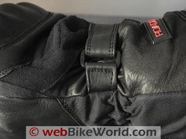 The wrist strap is in addition to the hook-and-loop gauntlet closure, which is minimal in size but works to secure the gloves.