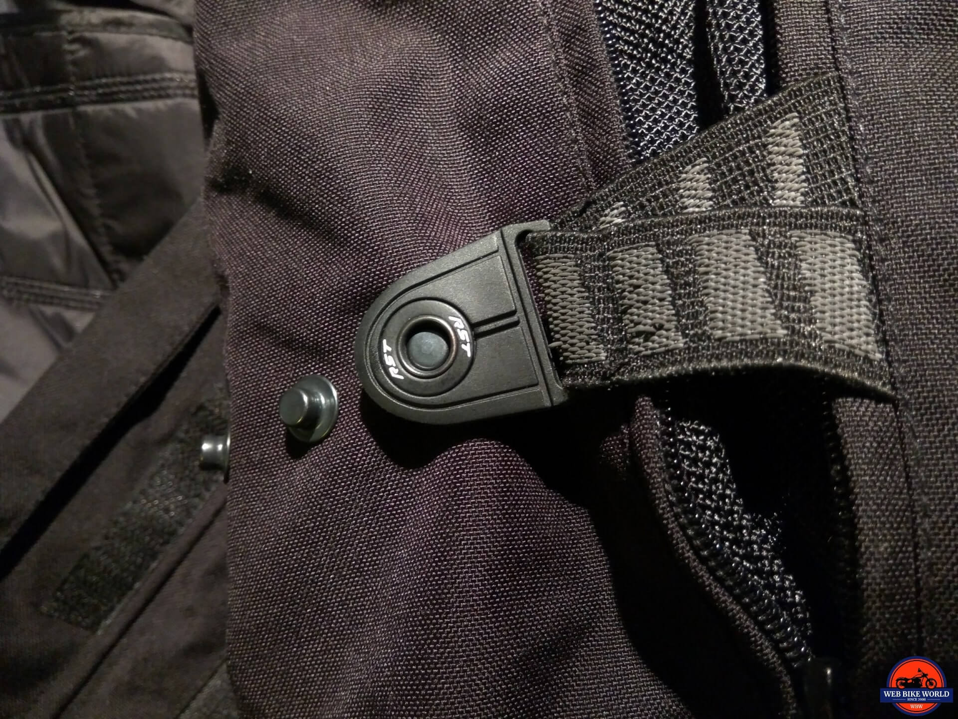 I can’t say I tested it in those conditions but it felt perfectly comfortable when I stood upon the pegs on quiet tarmac roads. Part of the reason for that is because this jacket has a unique “parachute strap”.