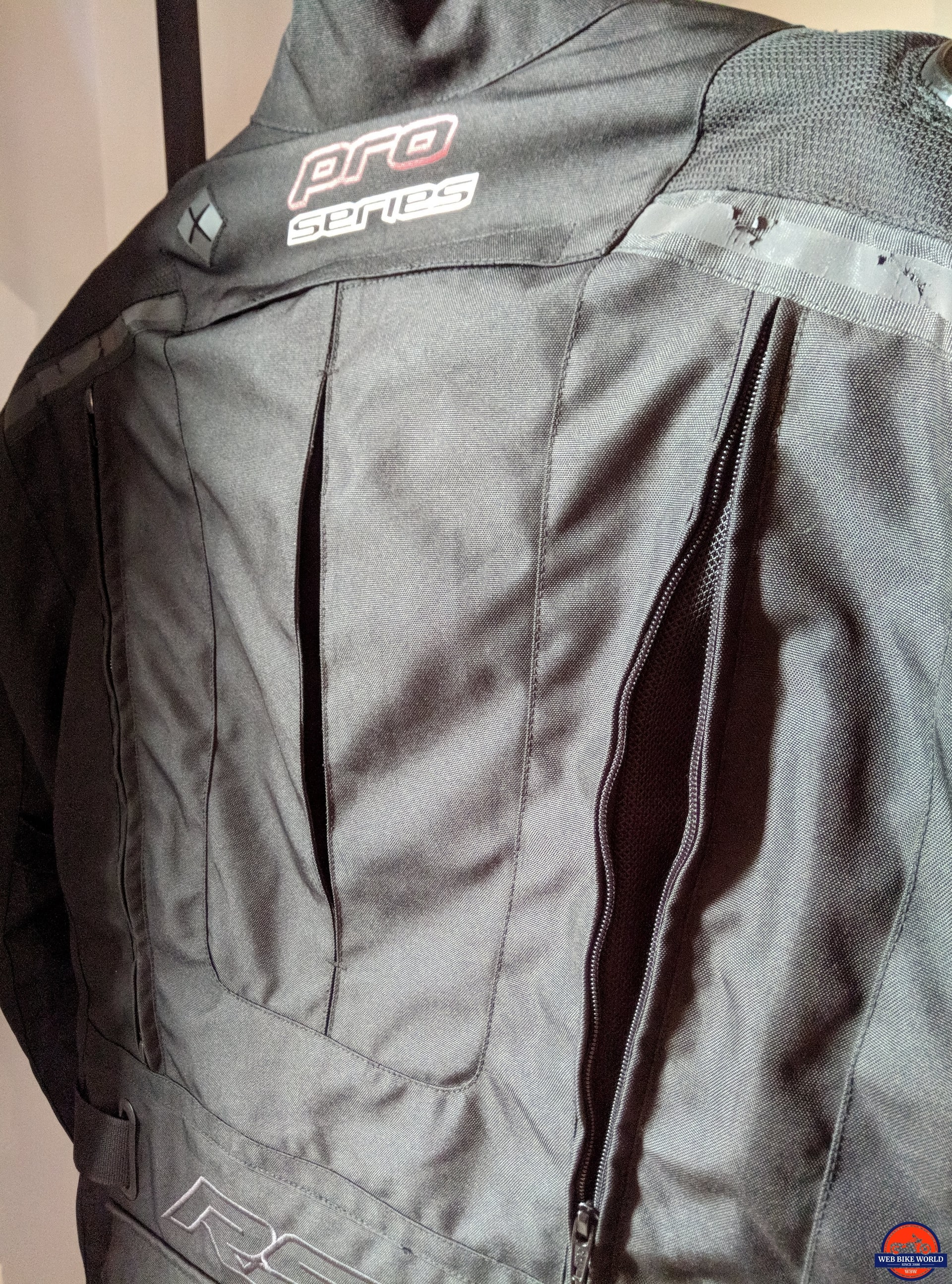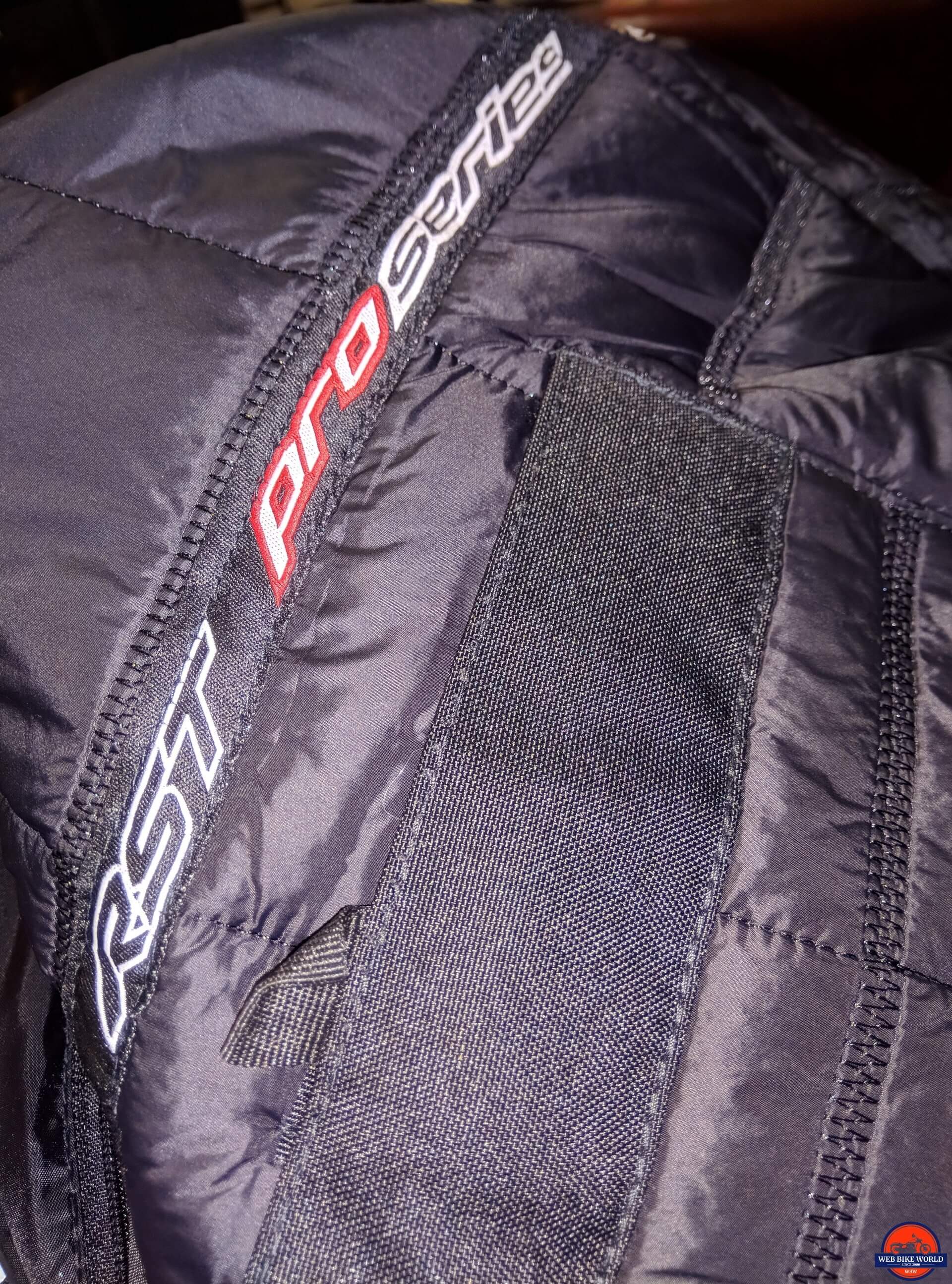 The jacket’s comfort liner covers the pockets leaving the impression that the armor is sewn in behind a layer of the jacket but RST included a zipper opening near the base of the back armor.
