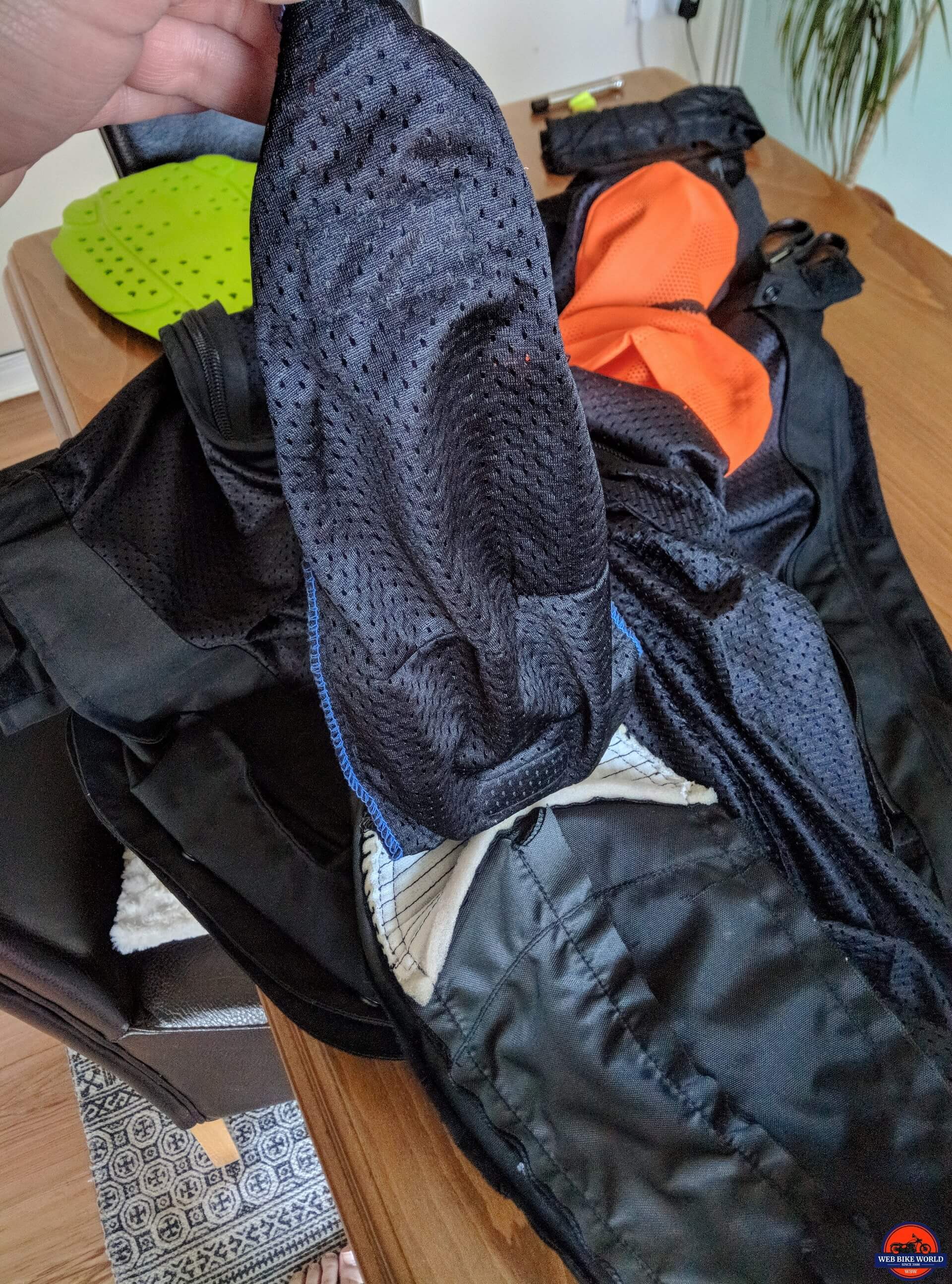 With all vents fully open, and with the thermal and waterproof liners removed, this jacket isn’t far off being a full mesh jacket! The vents on the jacket sleeves work particularly well when fully opened. The double-ended zipper, running from the wrist right up to the shoulder is clever because you can adjust just how much of the vent you want to keep open.