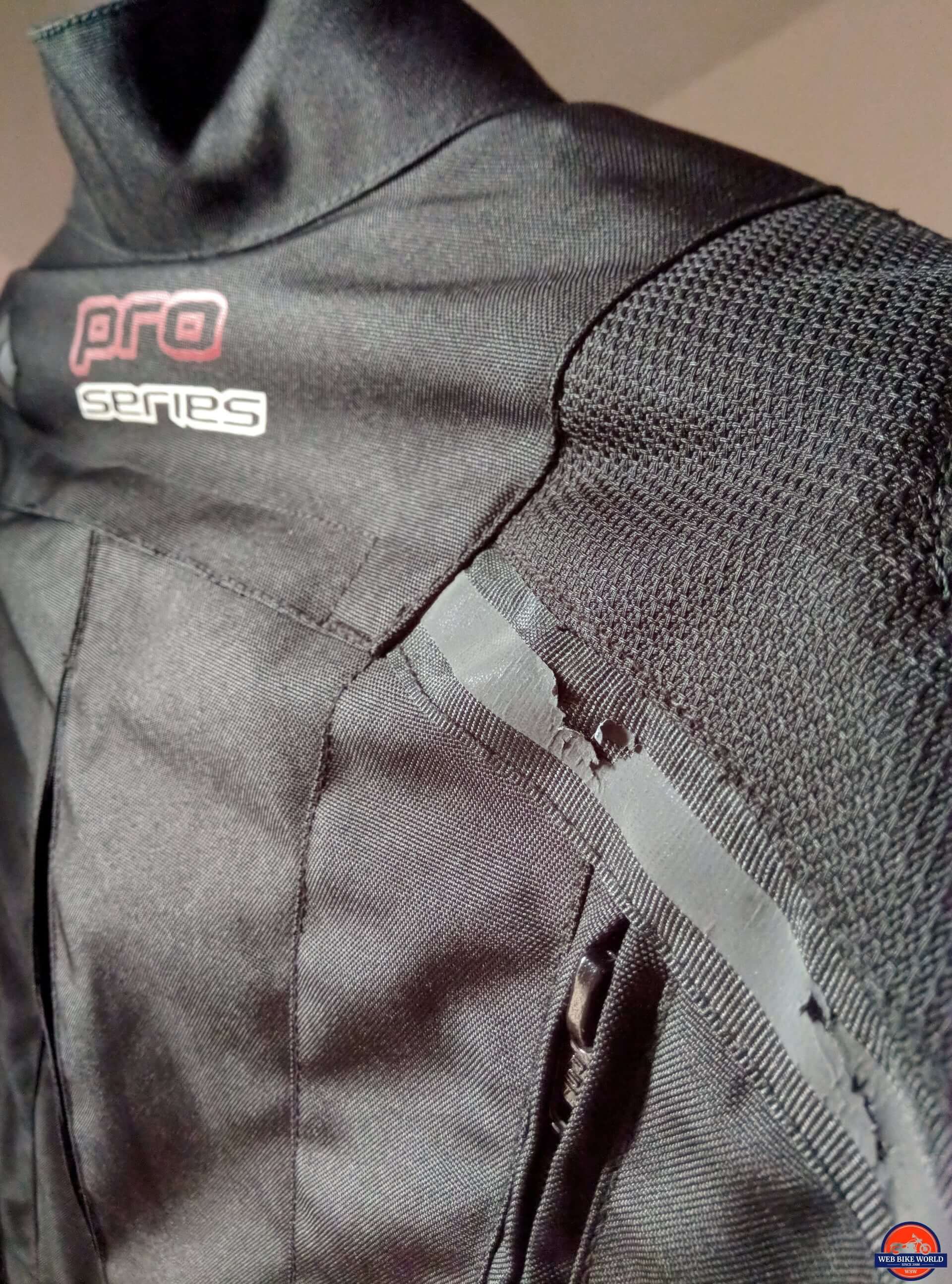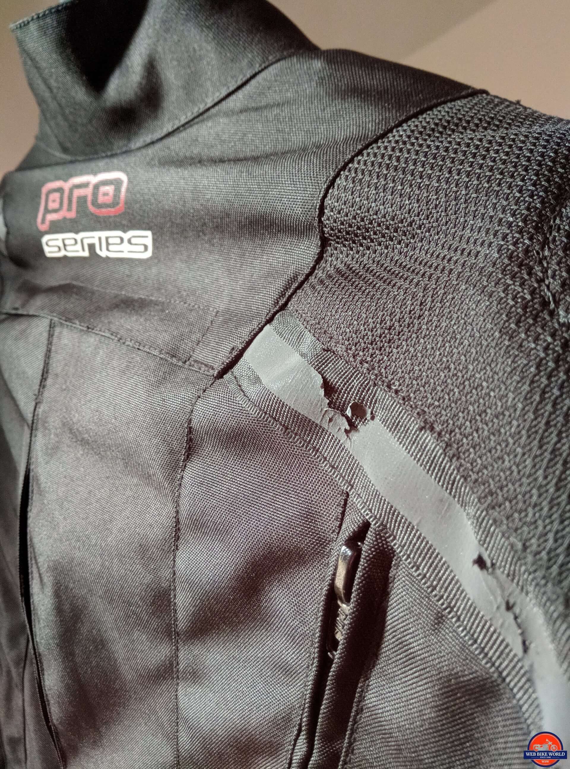 One of the most interesting features of this jacket is the outer layer of protective fabric. On the non-CE version of this jacket, which is no longer for sale, abrasion-resistant Cordura was used as the main fabric with ballistic fabric layered on high abrasion areas like the elbows.