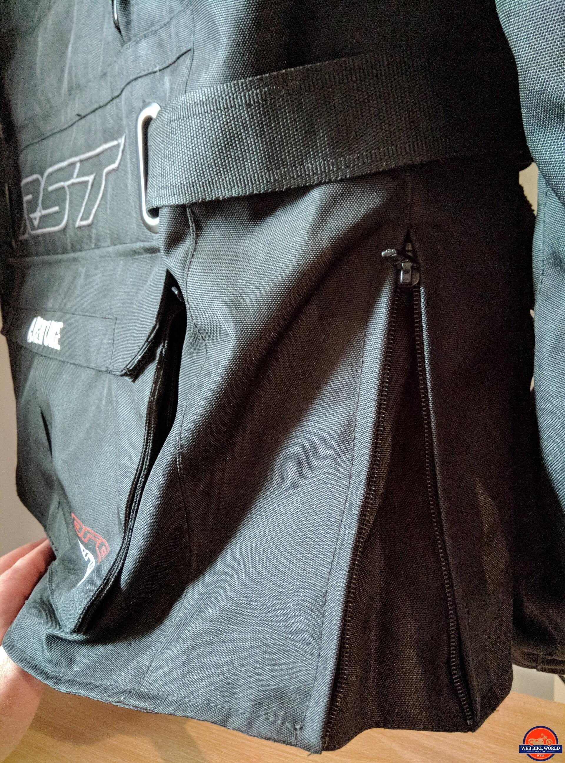 The designers at RST have another novel way of adjusting the very bottom of the jacket at the hip. There are zips on either side of the jacket, about 4 inches long, which you can open or close to tighten or loosen the jacket’s grip on your hips. This is far easier to use than the waist adjuster and it actually works.