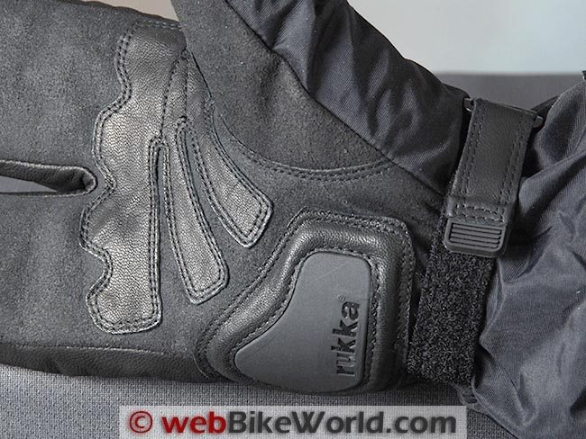 The single strap on the underside of the Lobster gloves not only hangs way off the side (photo in slideshow), it has to be tightened beyond the comfort level to actually keep the glove on your hand, a serious fault from a company with Rukka’s reputation.