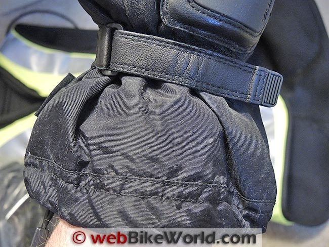This is where the Hein Gericke Pathan gloves have it all over the Lobsters. The Pathan Evo gloves have a more normal motorcycle glove style gauntlet with an extra security strap over the back.