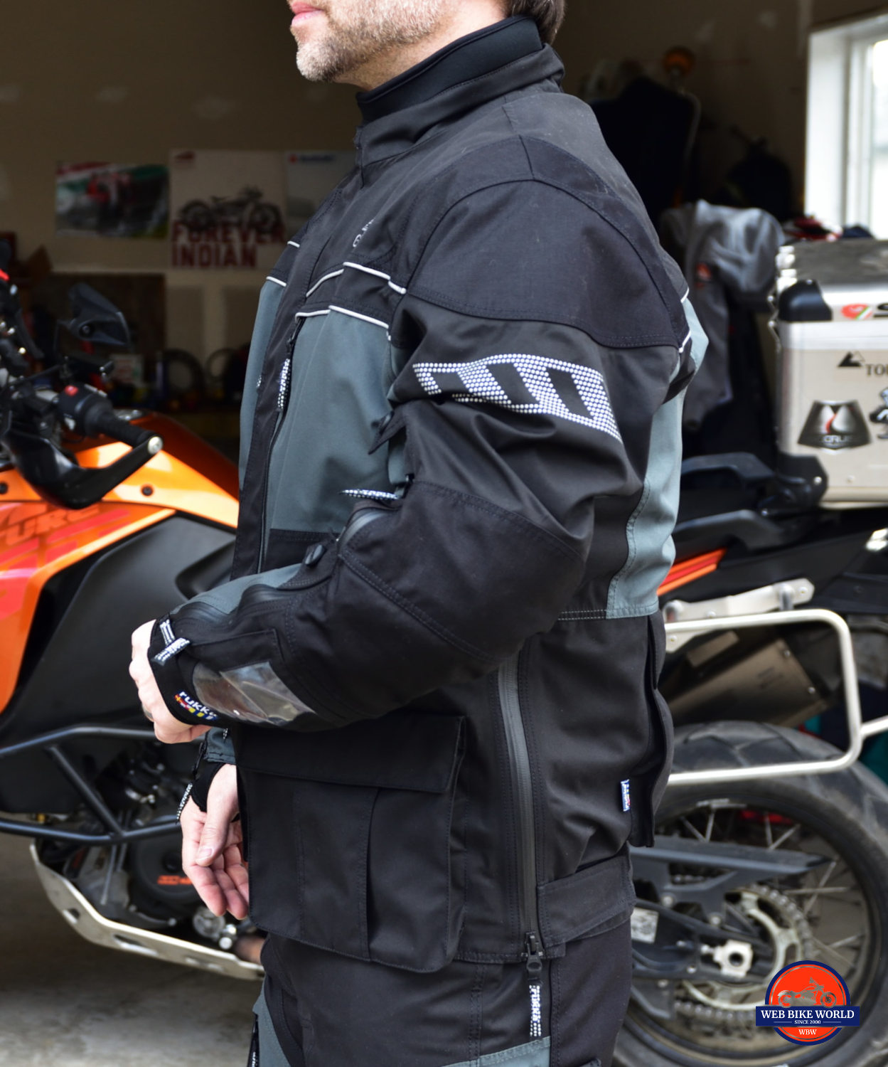 Not all GoreTex seems to breathe all that well, but the ROR sure does. Even while I wore it standing still out in the sweltering sun and 80-degree heat I didn’t sweat much. On the bike with all the vents open in front, on the arms, sides and back it’s a veritable wind tunnel of movement through the jacket.