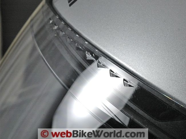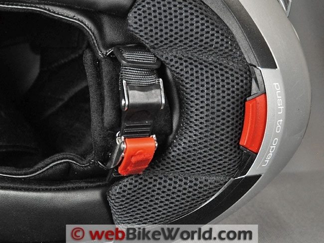 The owner’s manual for the DOT version still warns that the chin vent will provide a low level of ventilation even when it’s closed, which is supposed to prevent CO2 from building up inside the helmet. The chin vent snaps open and closed with a precise feel and it works very well.