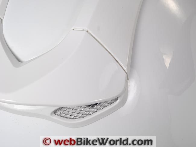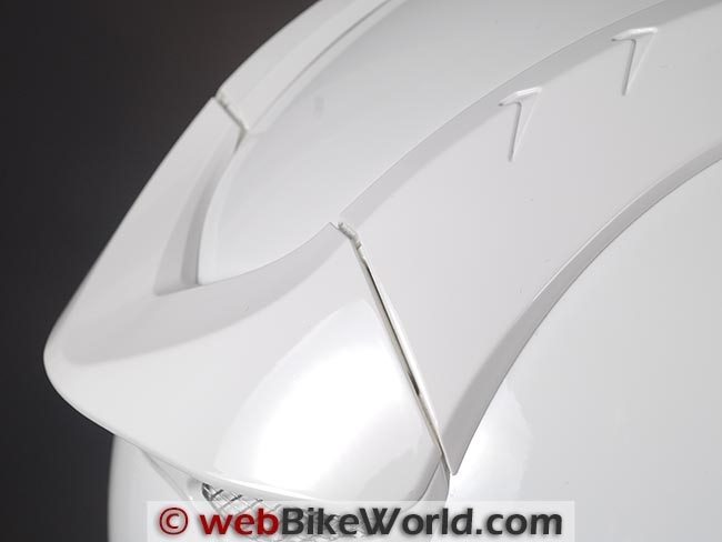 It isn’t as noticeable on the black trim of the ECE version, but the all-white DOT version makes the gap more noticeable. I’m not sure why SCHUBERTH couldn’t get this right; it seems like it should be easy enough to get the parts to fit, especially in a $900.00 helmet.