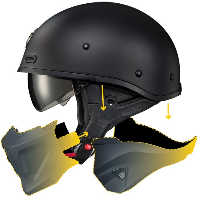 - Included cold weather ear covers with integrated speaker pockets to accommodate BlueTooth® communication system speakers (when used in 1/2 helmet Mode)