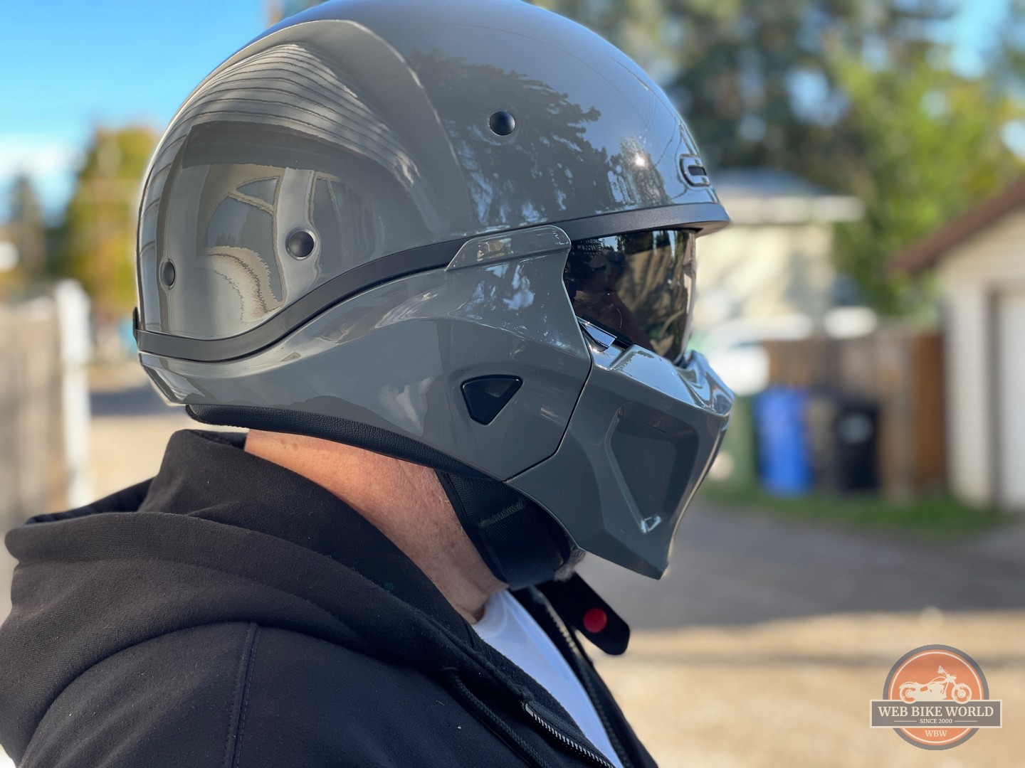 The Scorpion Covert X just looks killer in its full configuration. I received it in gloss Cement Grey, which judging from the trend I see in the automotive world, is a totally on-point color choice. I am not entirely sure how I feel about the lego-like nature of the 3 in 1 design, but it seems to be growing on me as I roll it around in my hands and play with the lower chin piece, taking it on and off.