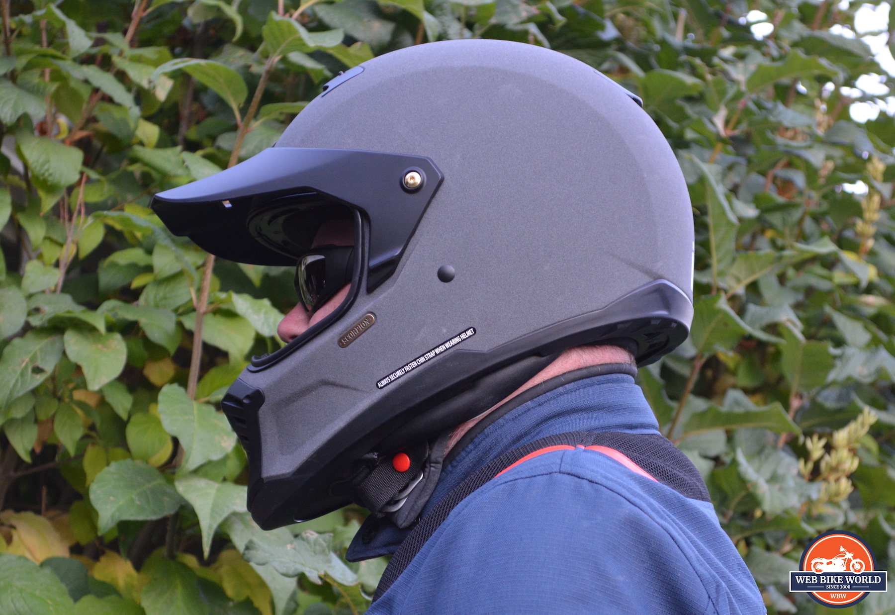 What Scorpion saw in amongst all these styles of riding is an opportunity to hit, at the very least, three different groups with one helmet, the HX1. It has the retro looks of the earlier full-face helmets, the shape and visor of a sports helmet, and the sun peak and goggle compatibility of an ADV helmet.