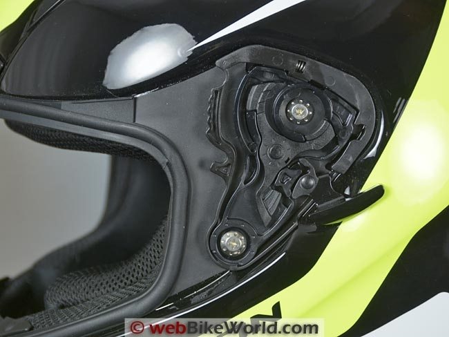 Scorpion calls their spring-loaded face shield retention system the “Ellip-Tec Ratchet System” and it pulls the face shield closed tightly against the gasket.
