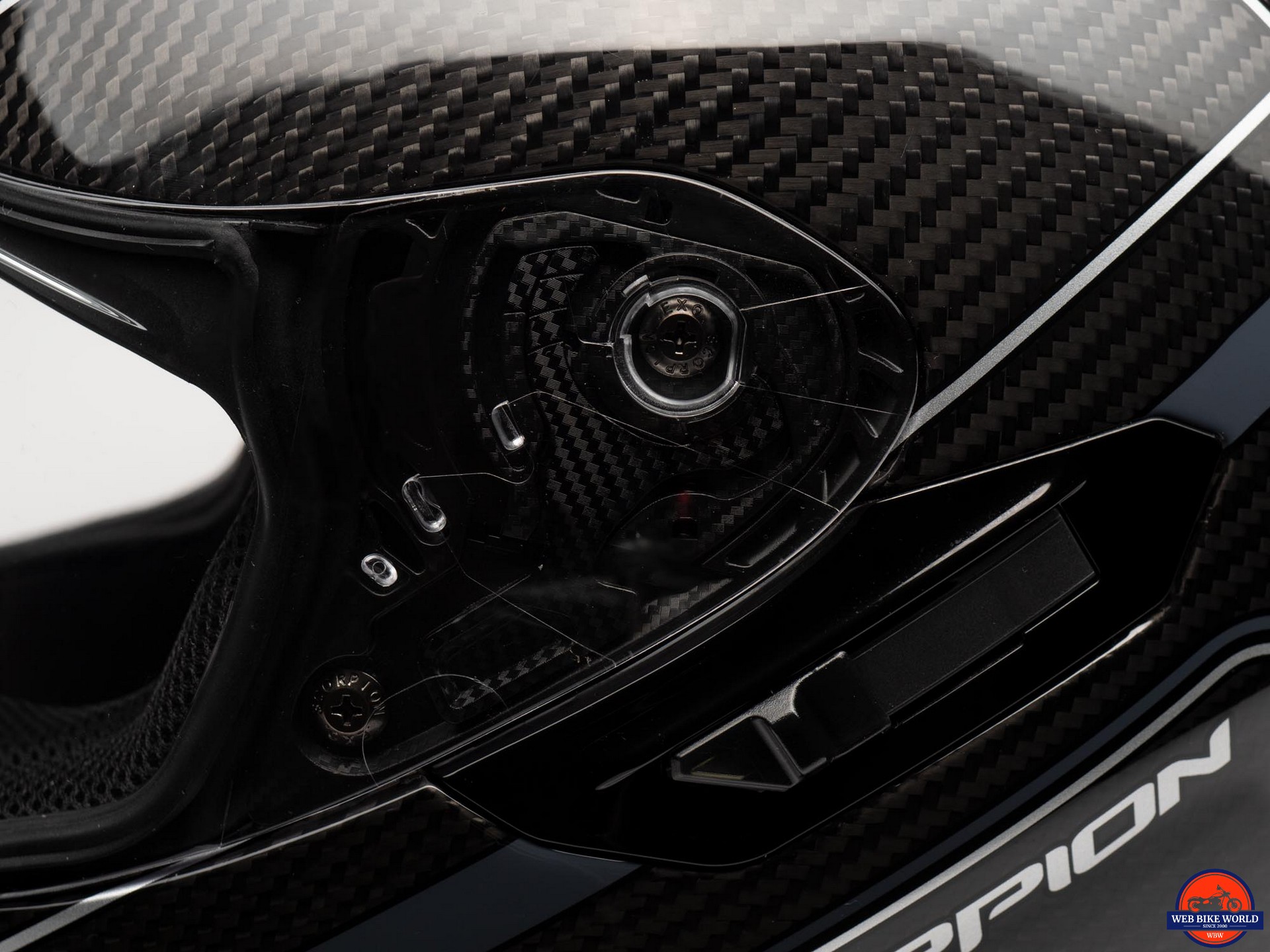 Sealing of the main visor appears to be solid and testing with some water being poured over the visor top bears this out. Scorpion uses an elliptical cam setup (Ellip-Tec® II) that makes the visor snug up against the gasket as it closes.