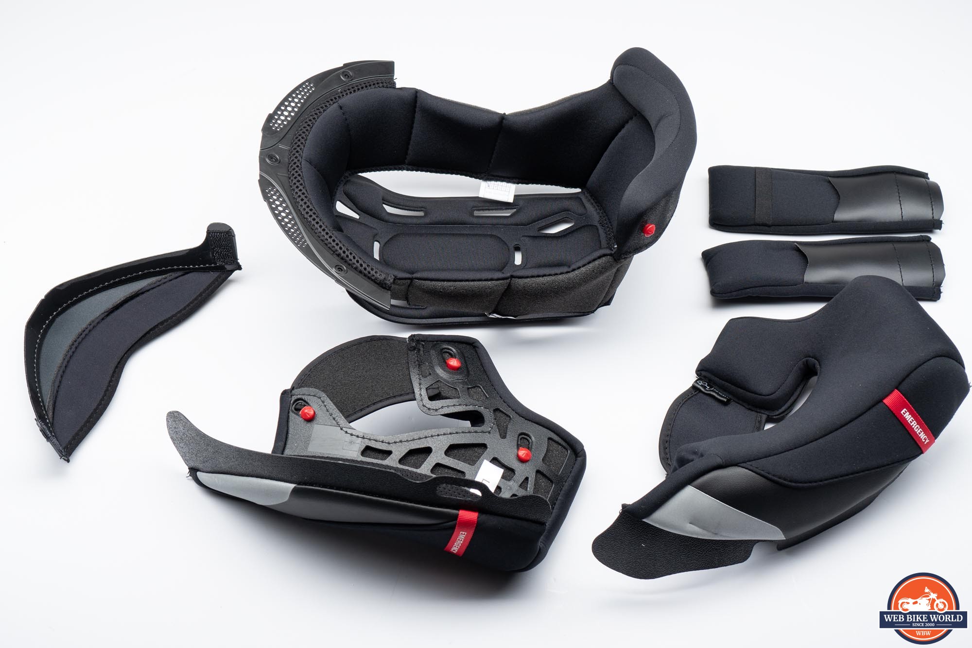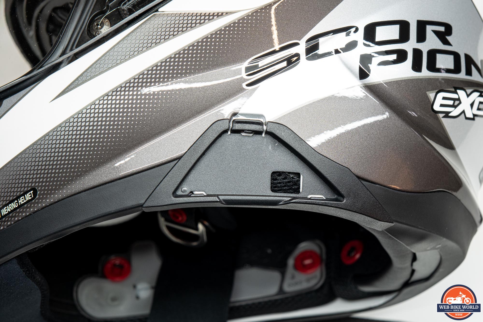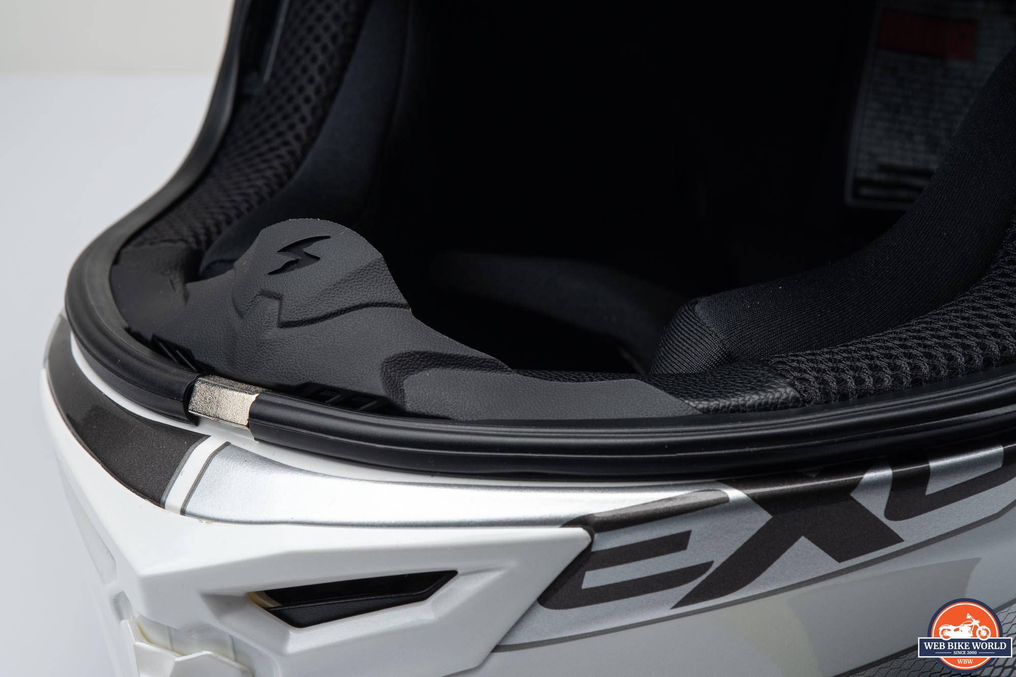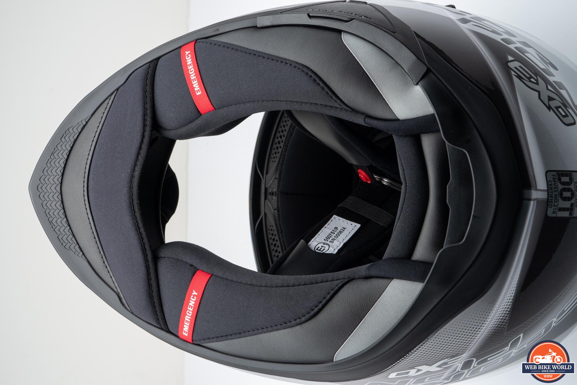 I appreciate that Scorpion includes emergency cheek pulls on many of their full-face helmets. This is such an easy thing to implement and can greatly assist EMTs in removing a helmet by reducing the risk of additional trauma to a crash victim. These pulls allow the cheek pads to be removed from the helmet shell by letting the snap-in pins get extracted from their positions as the pad itself is pulled downward.