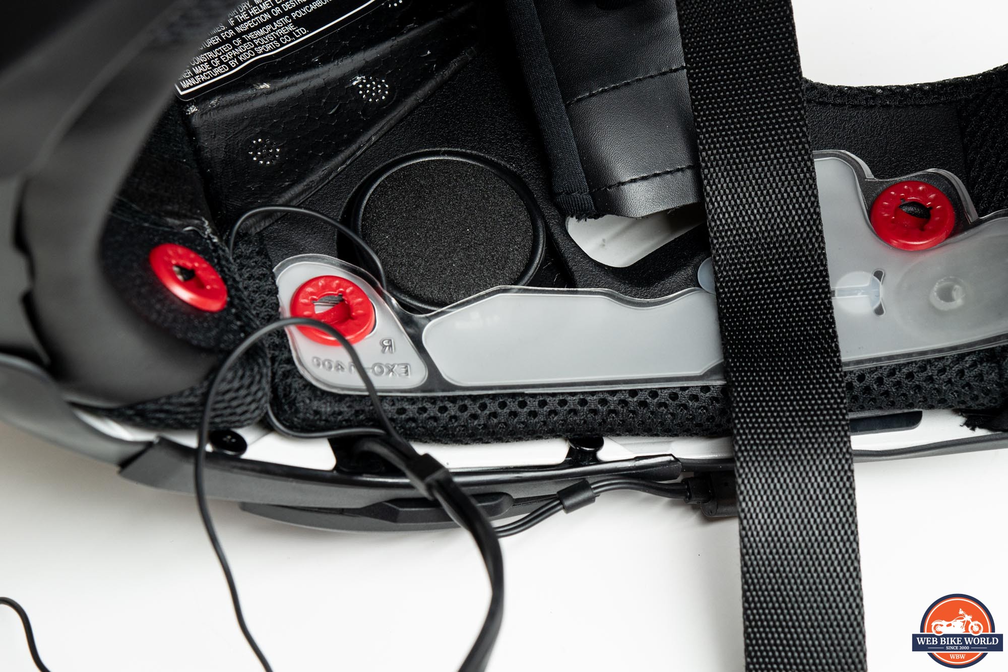 The EPS (extruded polystyrene) used in the T520 is a dual-density design and it includes several channels for air to pass over and around the liner. This is a pretty standard setup but Scorpion also includes large spaces for speakers and there are air bladders that sit between the EPS and the cheek pads as part of the AirFit system.