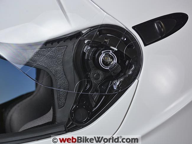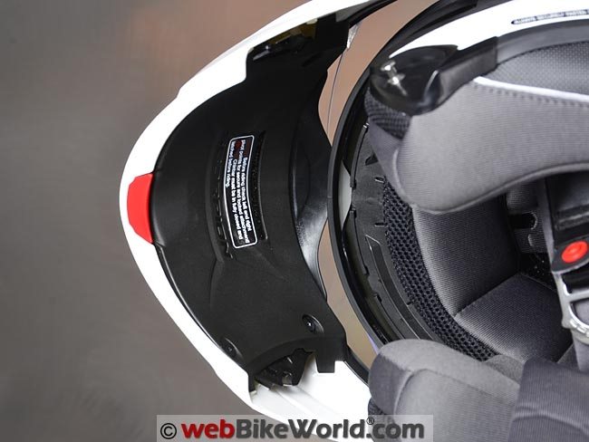 There’s a big lift tab on the lower left, and that’s a nice feature. We’ve noticed some of the lift tabs seem to be shrinking lately on motorcycle helmets and bigger is sometimes better (to a certain point, of course).
