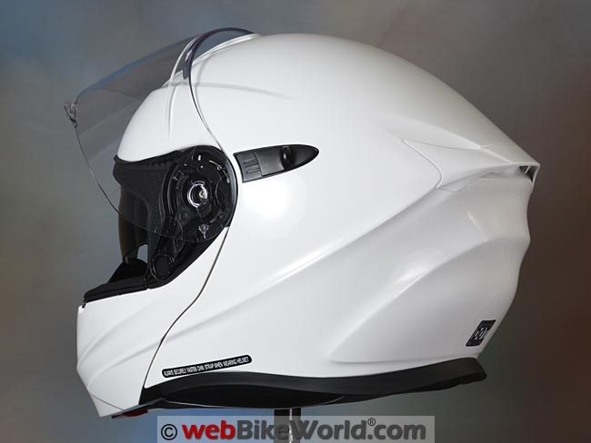 That goes pretty much for the face shield also, which has very good outward visibility or sight planes that are better than the average flip-up in both the horizontal and vertical planes.