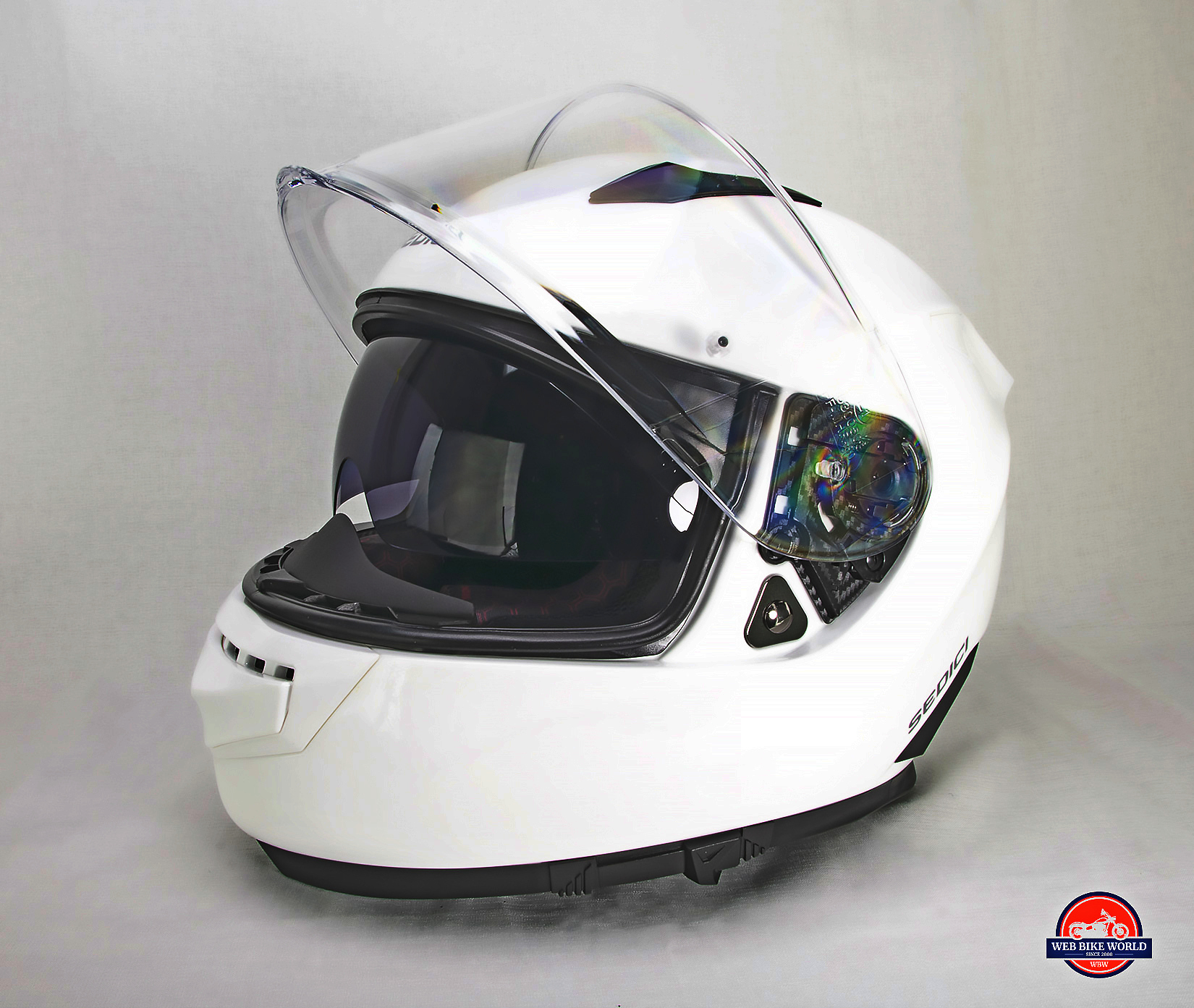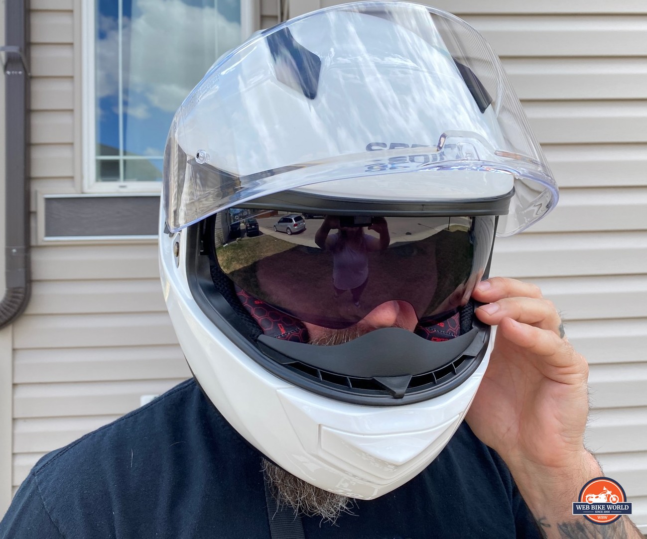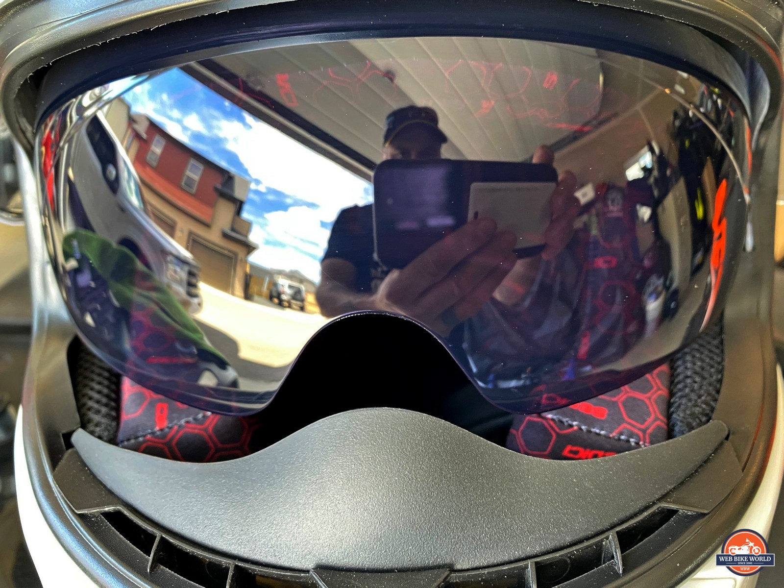 Does it really need it? Surprisingly no. The main visor will fog up briefly if I exhale on the inside of the visor, but the airflow coming in from even just the chin bar vent clears it again in milliseconds. With the visor barely cracked open it won’t fog up at all. They’ve done a good job selecting an anti-fog coating for the main visor.