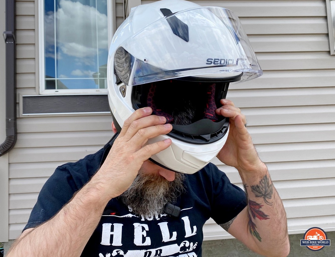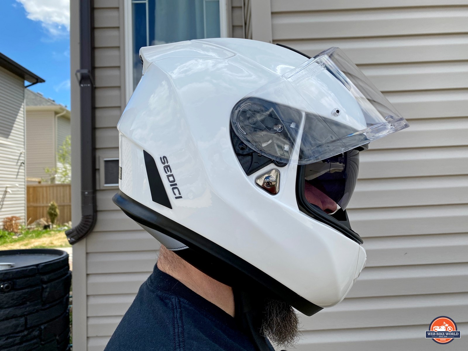 I’ve tested many helmets that will open that slight bit but won’t stay open when the wind presses against it at highways speeds. It’s inexcusable to me that a $700 USD AGV helmet won’t accommodate me in this way… but this $200 Sedici will! Yes I’m referring to the AGV Sportmodular Carbon among other premium helmets I’ve tested.