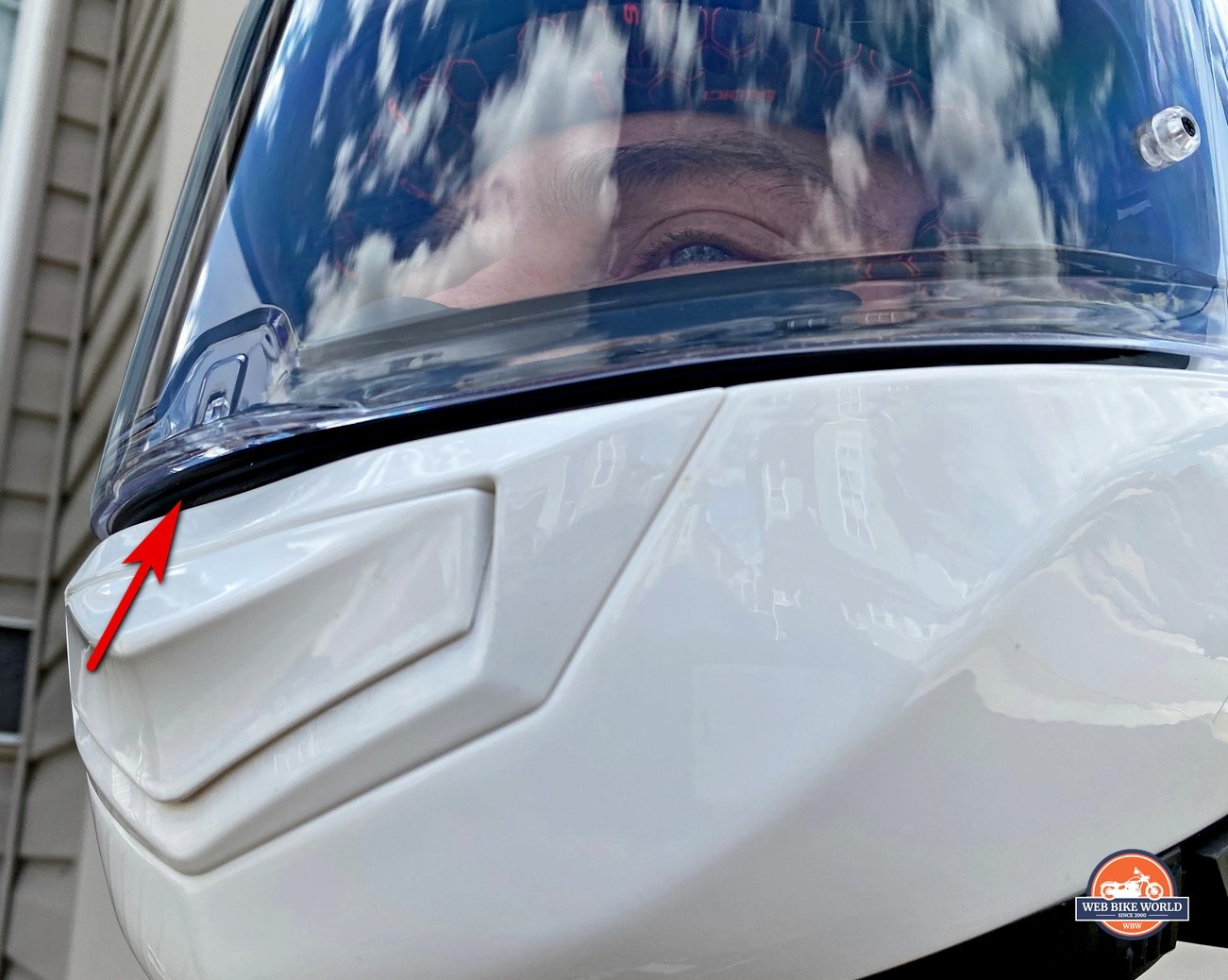 You know those times when you’re riding and want just a little more airflow to come in than the chin bar vent can provide without getting all the bugs, rain, gravel, etc along with it? Well on many Arai and Shoei helmets you can pop open the visor on the left side using a funny-looking mechanism built there and get it to open about a ¼ inch. It’ll even stay cracked open with the full force of the airstream hitting it until you purposely close it fully.