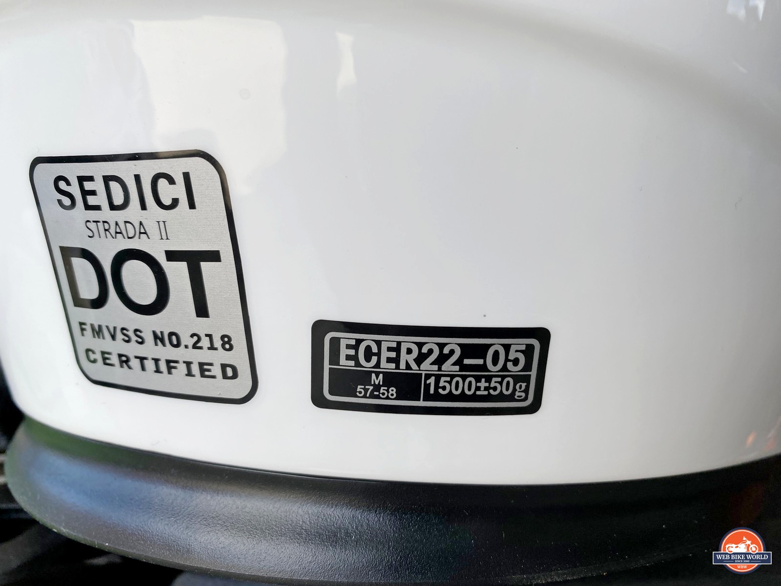 Sedici also makes a slightly different version of the Strada II helmet called the Strada II Primo, and you’ll find a Snell M2020 certification stamp on the back of it. This is basically the same helmet as the Strada II other than the integrated drop-down sun visor. The Primo doesn’t have it and as a result was able to pass the Snell testing. Not that Snell automatically fails helmets with internal sun visors, but most often that feature results in a failure of the penetration test they do in particular.