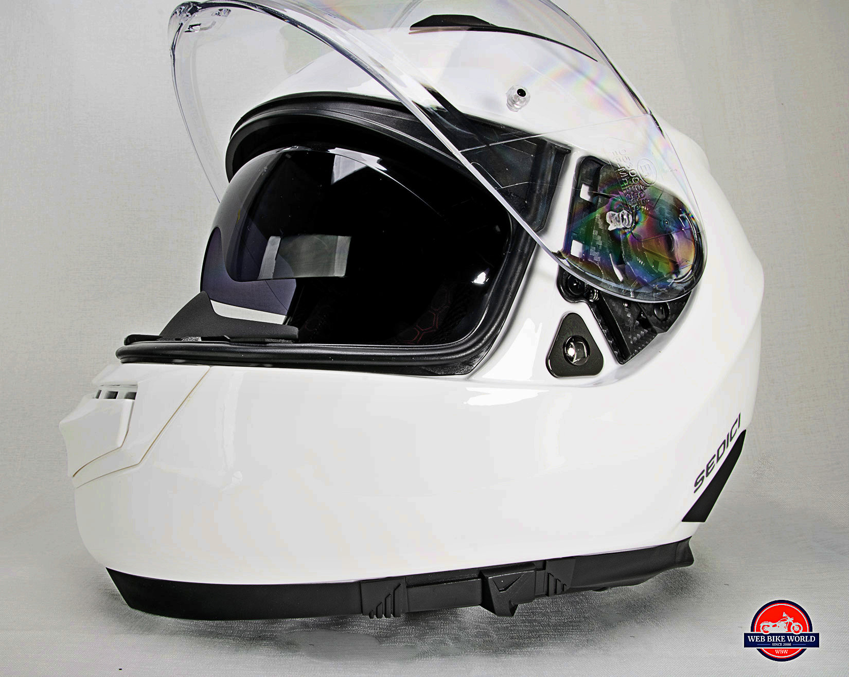 The slider switch action for lowering or raising the lens glides stiffly and feels low budget when compared to almost any other one I’ve tested. That’s especially noticeable if you try running the one on the Schuberth C4 or C4 Pro which glide as if on silk rails. That’s a brutally unfair comparison to make since these Schuberth helmets cost double and more than what this Sedici helmet does, even when the Schuberths are on sale.