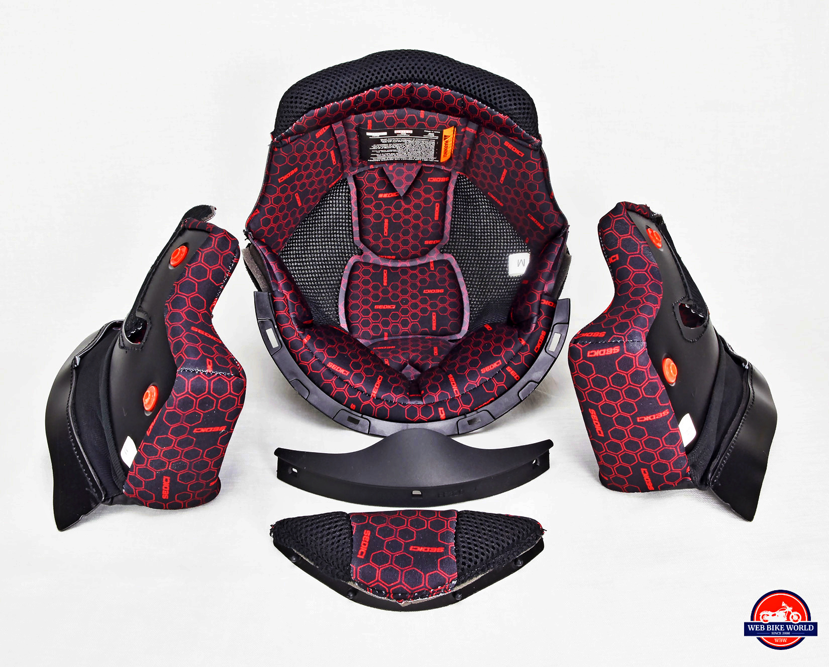 It was easy enough to accomplish except that I had to cut two notches in the plastic fin on the left side cheek pad in order to route cables from the unit to the speakers and microphone. The cheek pads came out and went back in with ease as did the crown comfort liner except for where it attaches in the front. There are several small tabs that have to be lined up carefully to get a good fit. It’s only mildly irritating at least. Other helmet liners have been much more challenging to re-install in comparison.