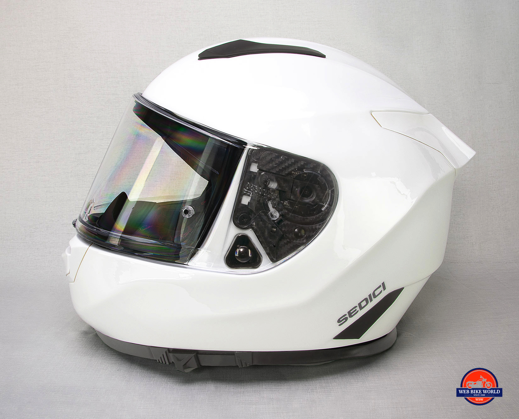 Based on this review I bought a Strada II Primo with full bluetooth. I found that the helmet is extremely loud. It’s not wind noise. The wind is channeled perfectly over this helmet. The shell of the helmet itself actually seems to transmit the wind vibration into the inside of the helmet, through the foam. I believe it’s because it’s a hard fiberglass shell which is brittle. When you tap the side of the helmet, it sounds like a hard brittle fiberglass hell, and I suspect that it’s transmitting a lot of noise because of the shell material. But I haven’t tested it against any other modern helmets, only an old plastic full face helmet that is really terrible and produces the same amount of road noise but with a lot more wind buffeting, wind reverb, and wind problems. The Sedici should not use special fiber materials, because regular plastic would make it quieter. The HJC helmets cost the same and are quieter (apparently just as quiet as the Shoei) and the HJC have a better gasket. The problem with the Strada II and why I might return it is because the gasket is just awful. The way it’s designed, it’s like the gasket designers didn’t actually talk to the people who designed the windscreen. The gasket folds up and binds up as you close the helmet, so that it’s “pinched” and folded over backwards near the hinges, which doesn’t look right. The poor gasket design is a major fail, even though it doesn’t actually affect the wind noise (there is no whistling or wind noises from the seal) but it’s just a poor design, that causes me to have mental OCD problems.