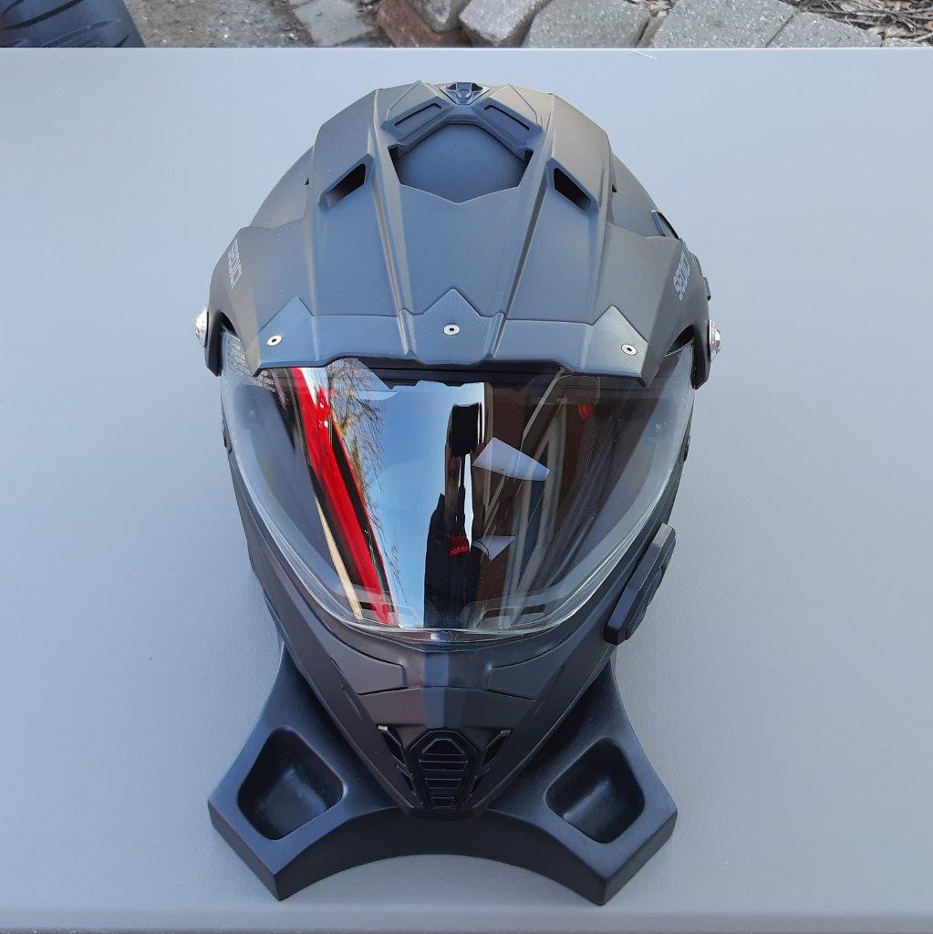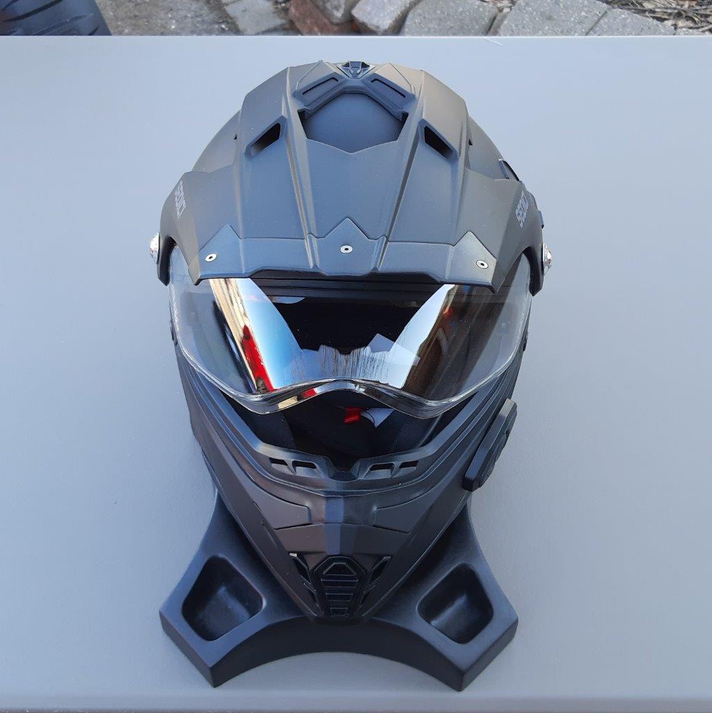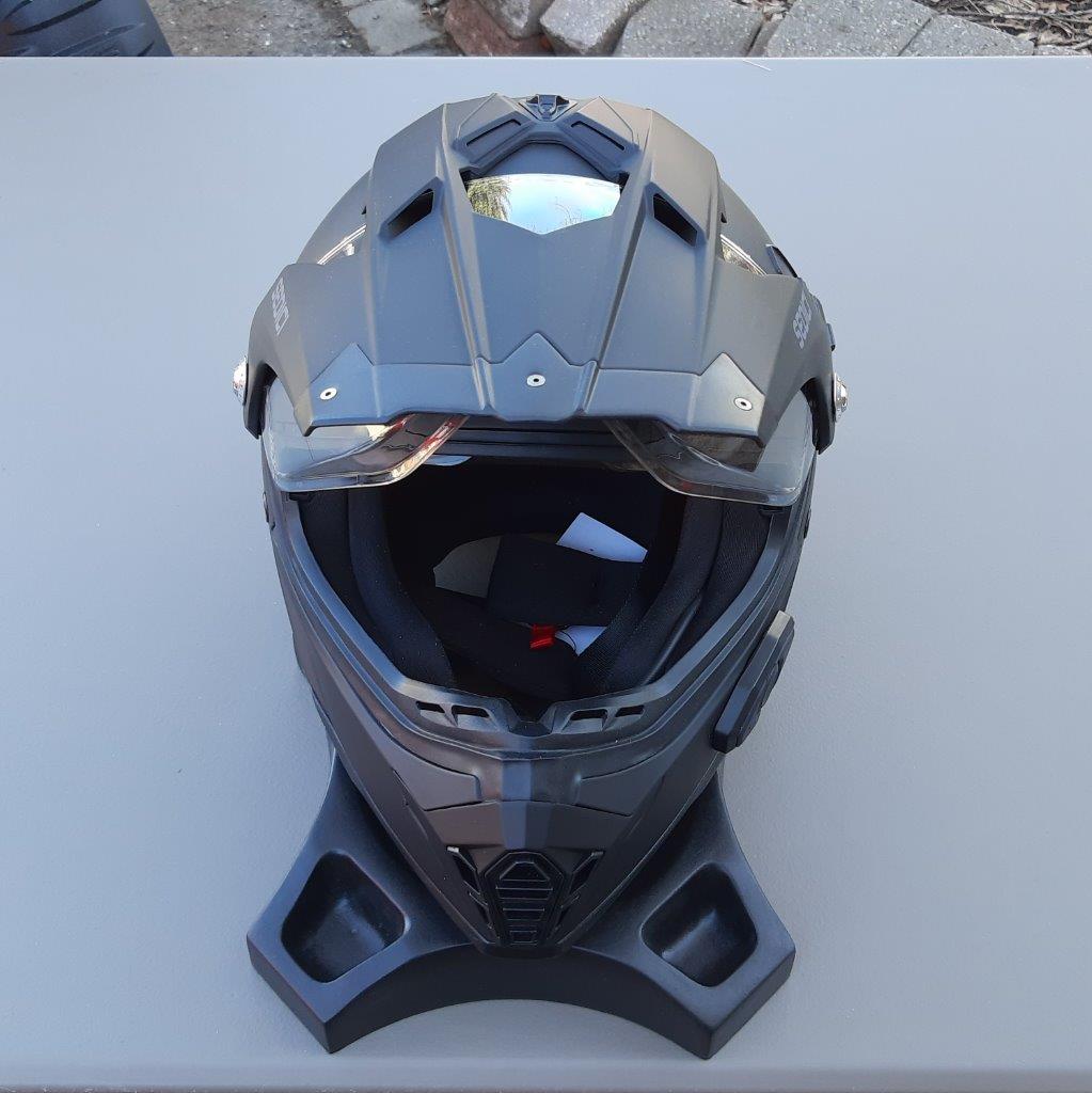 The matte black helmet in Large provided by Revzilla for this review has a solid impressive presence, as matte black typically provides visually. It is well-finished, feels and is solid with a noticeable weight bias to the rear and, has many of the usual ADV or dual-sport attributes clearly visible and seemingly well integrated.