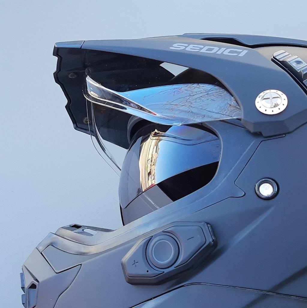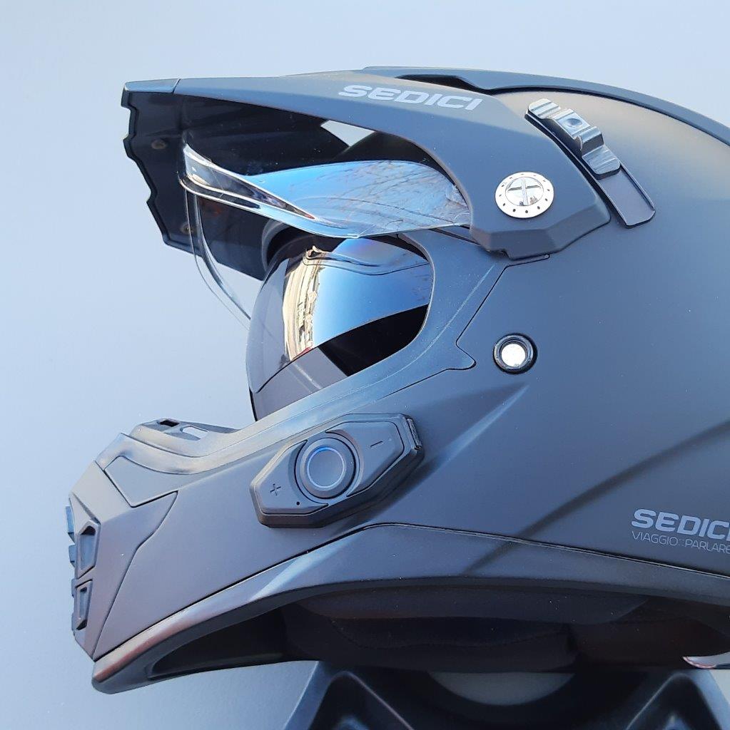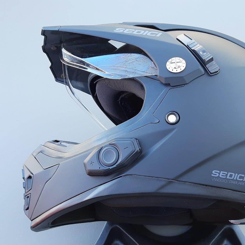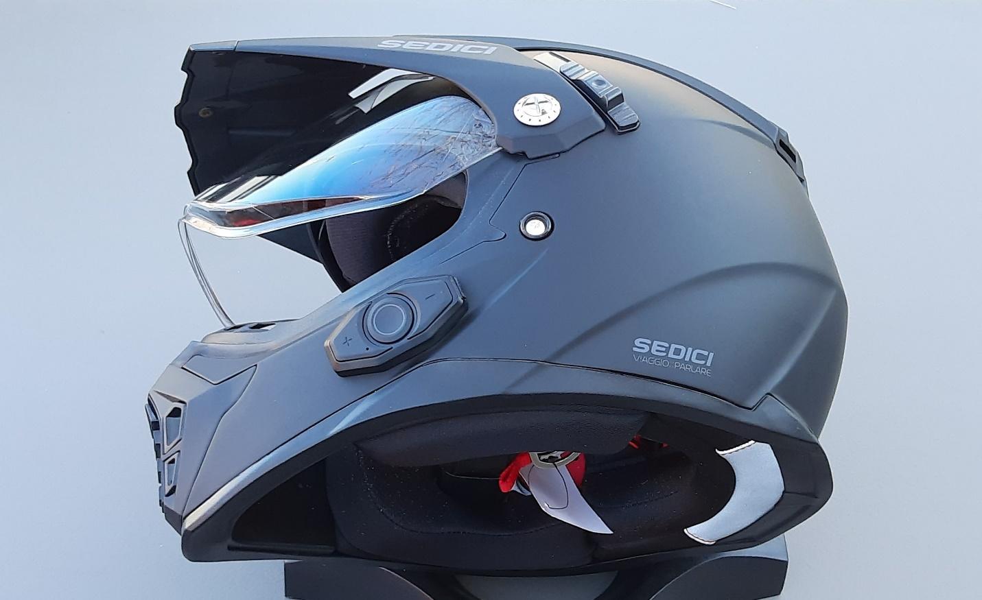 Sedici Viaggio Parlare Sena BT ADV Helmeteeing and getting to use the integrated SENA DWO-5 BT system with the Sedici Viaggio Parlare ADV helmet is like visiting an aging reliable friend. The DWO-5 system is one of the original collaborative efforts from SENA in designing and integrating their BT features into many different brand and model helmets including the BILT and Sedici helmets.