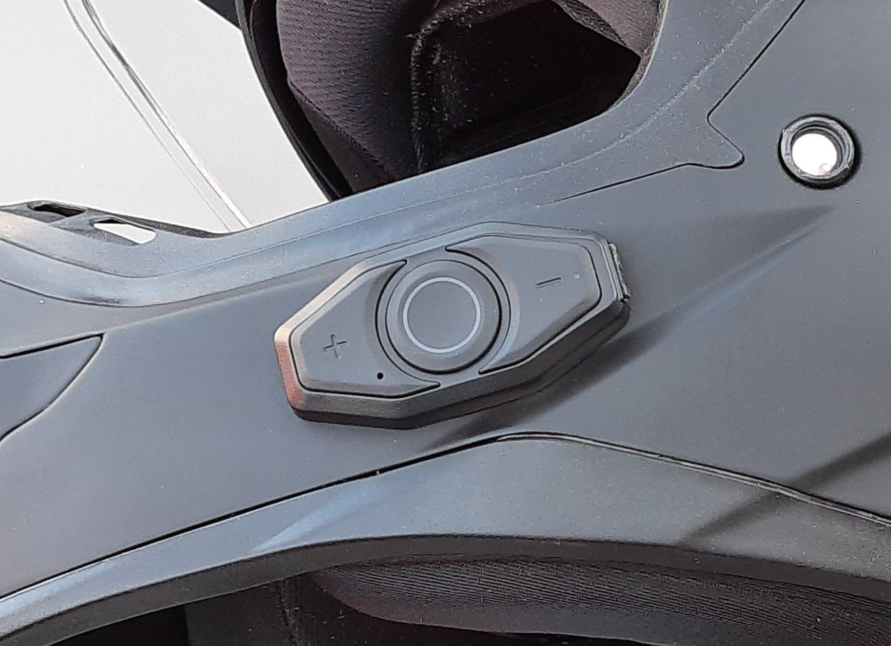 The angular eight-sided BT DWO-5 BT module with bevelled edges is securely fitted to the left side of the helmet and sits 10mm above the surface of the helmet for a low profile layout; everything else is hidden inside the helmet.