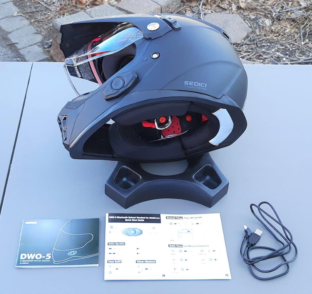 It comes packed in its own lightweight black helmet bag and the only item packed is the small Sena package containing the DWO-5 documentation and micro-USB charging/data cable.