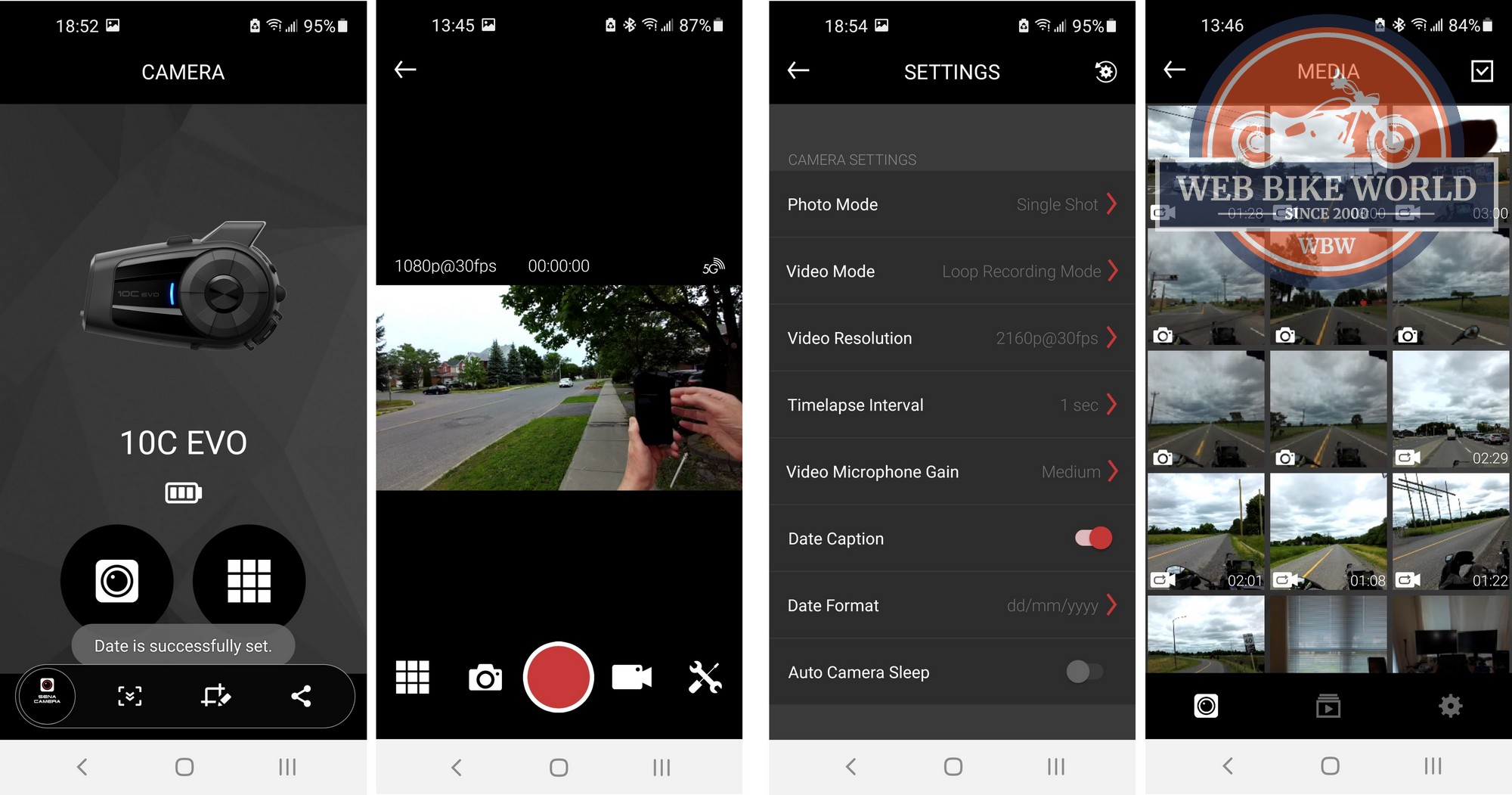 As this Sena 10C EVO is usually powered from a portable power bank or motorcycle source the Auto Camera Sleep feature is kept turned off under the Camera App Settings; in not allowing the camera to ‘sleep’ it is ready to start recording almost instantly when the Camera button is pushed for one second. But this is a good power-saving feature available for use.
