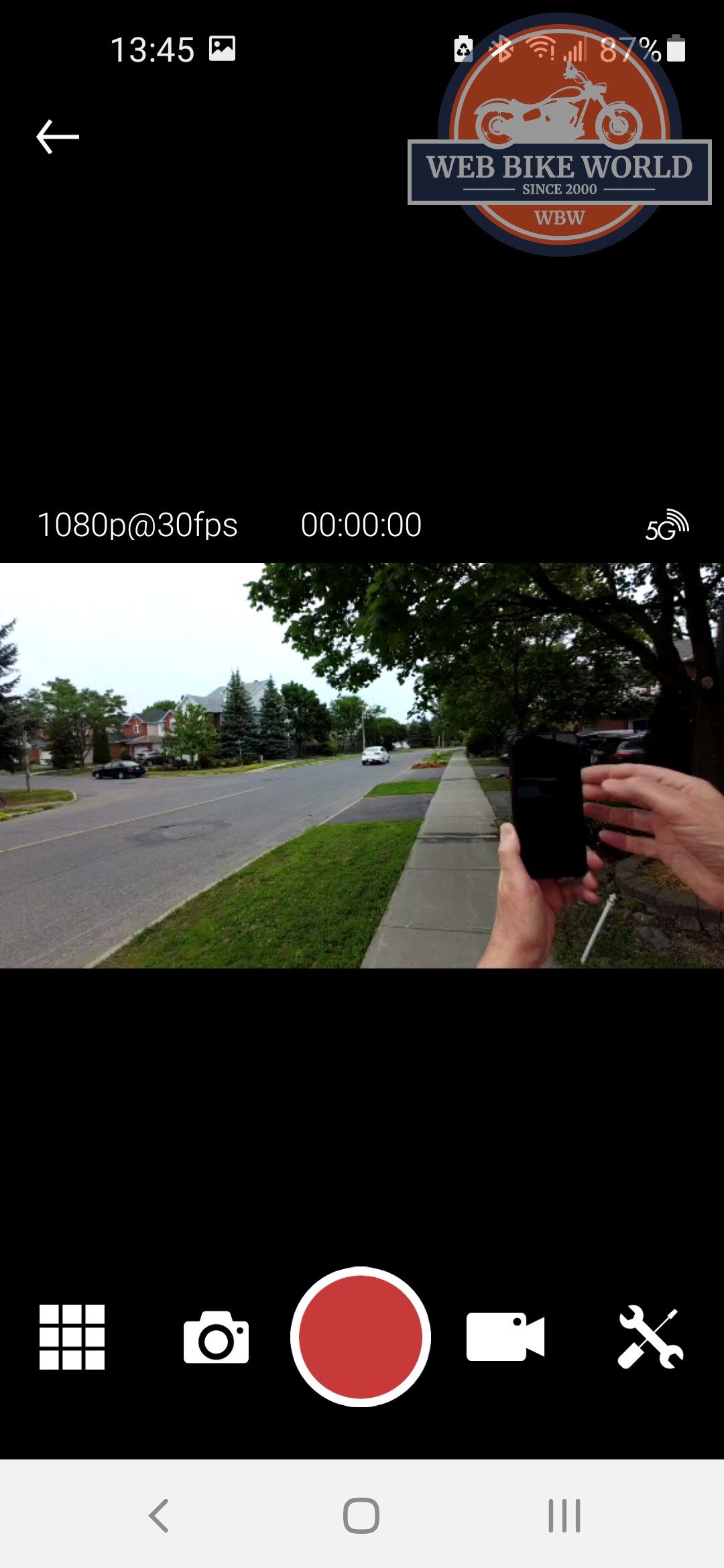 Timelapse Mode – if set under the Sena Camera App menu and recording has started a series of photos at the selected interval (1, 2, 5, or 10s) is taken, and when recording is stopped or the maximum file size of 4GB is reached a timelapse video is created.