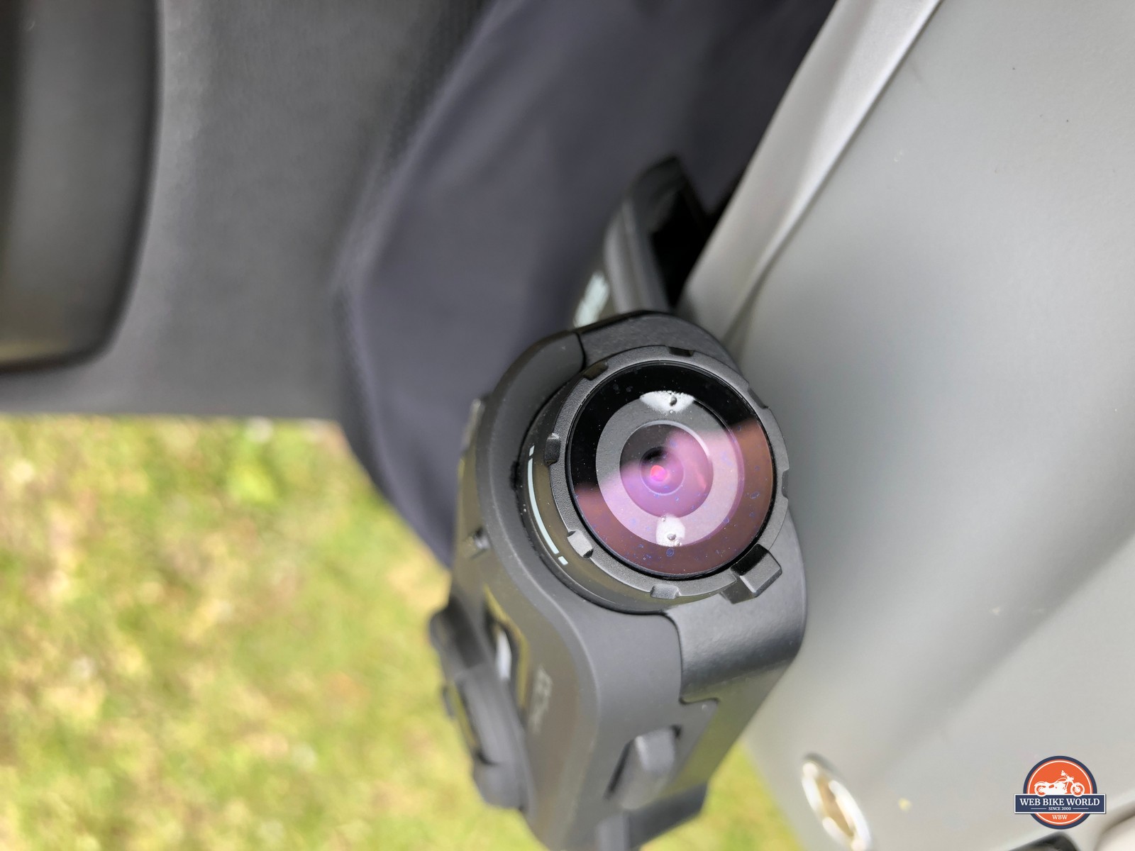 SENA should design a new version of lens cap equipped with a magnetic or velcro retainer on the side of the camera body. It should also have a small tether on it so that when you pop it off while riding it won’t fall on the road and bounce away into the ditch. The retainer could hold the cap out of the way until you’re finished using the camera then be replaced to protect the glass.