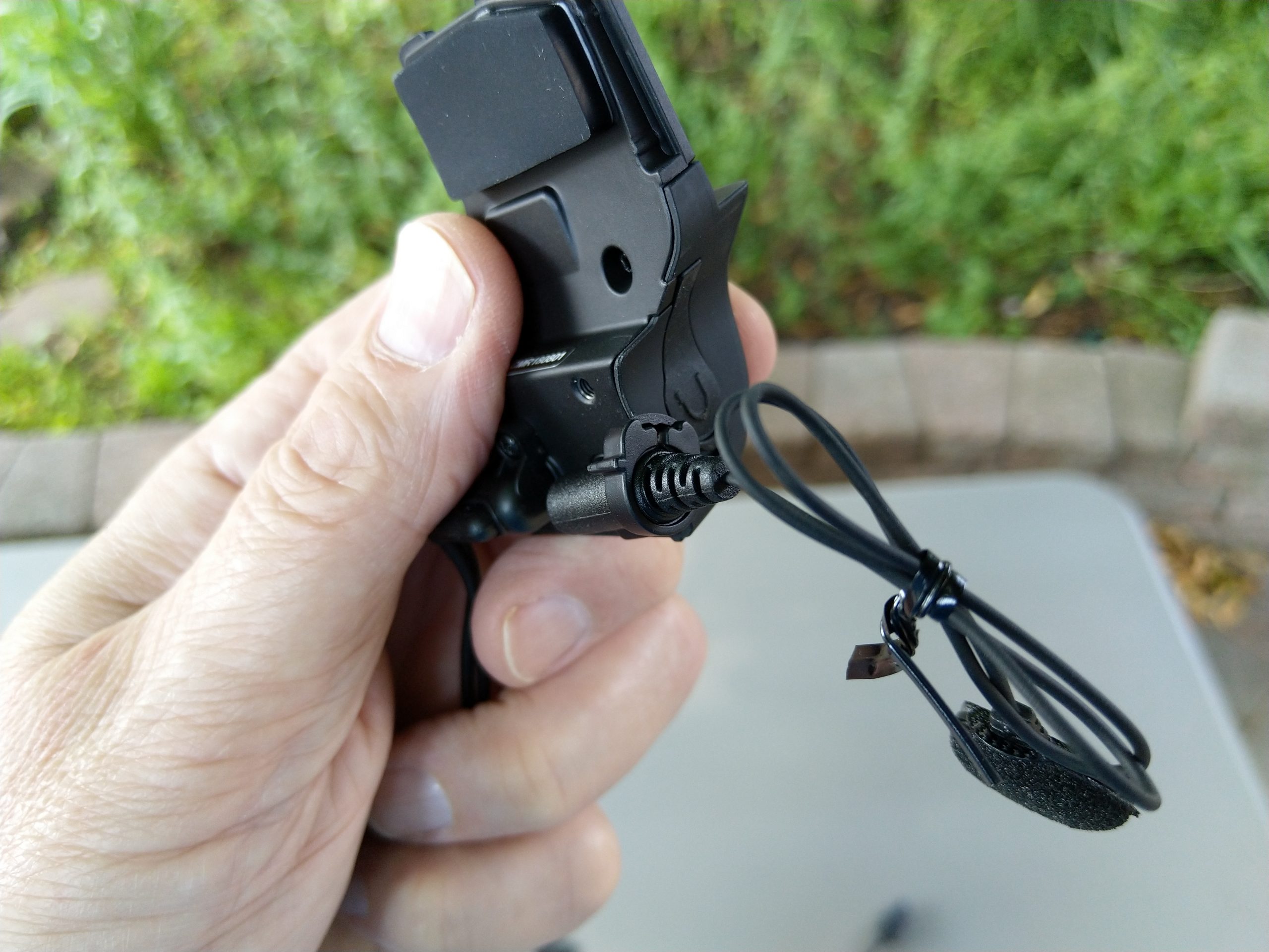 There are four primary controls on the face, top, and back, with a fifth on the bottom of the base mount piece (more on this one later). A honking big smooth-running Jog Wheel with Center Button dominates the face, with the back-mounted Phone button and top Mesh Intercom Button (MIB) rounding out the clearly visible controls.