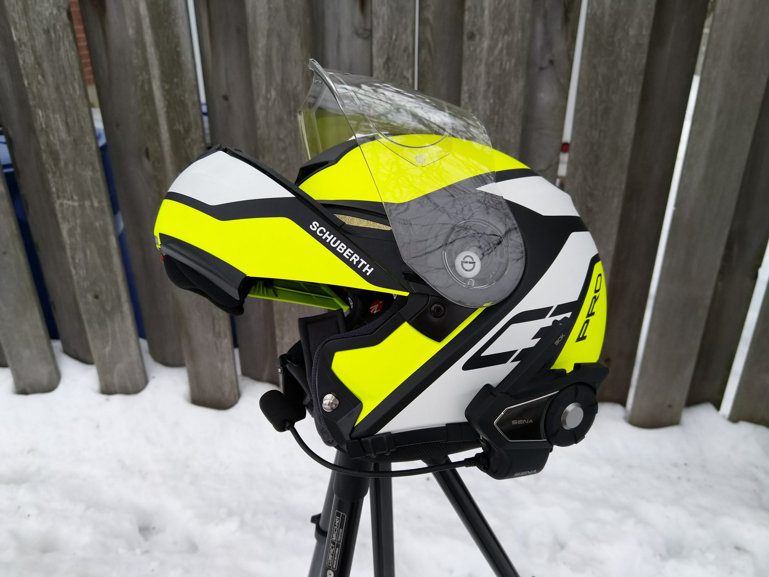 Even inside the Schuberth C3 Pro a very quiet helmet that often allows volumes levels to come down a notch or two, any semblance of lower tones is lost as speed and noise levels build dramatically impacting the feel of your favorite tune.