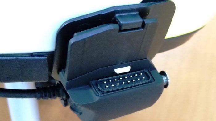 Other than the USB-C charging/data port, there are no external ports on the Sena 50R as found on the Sena 50S system that retains the 3.5mm auxiliary headset/earbud jack and the rear 2.5mm auxiliary input jack on the front and back of the base.