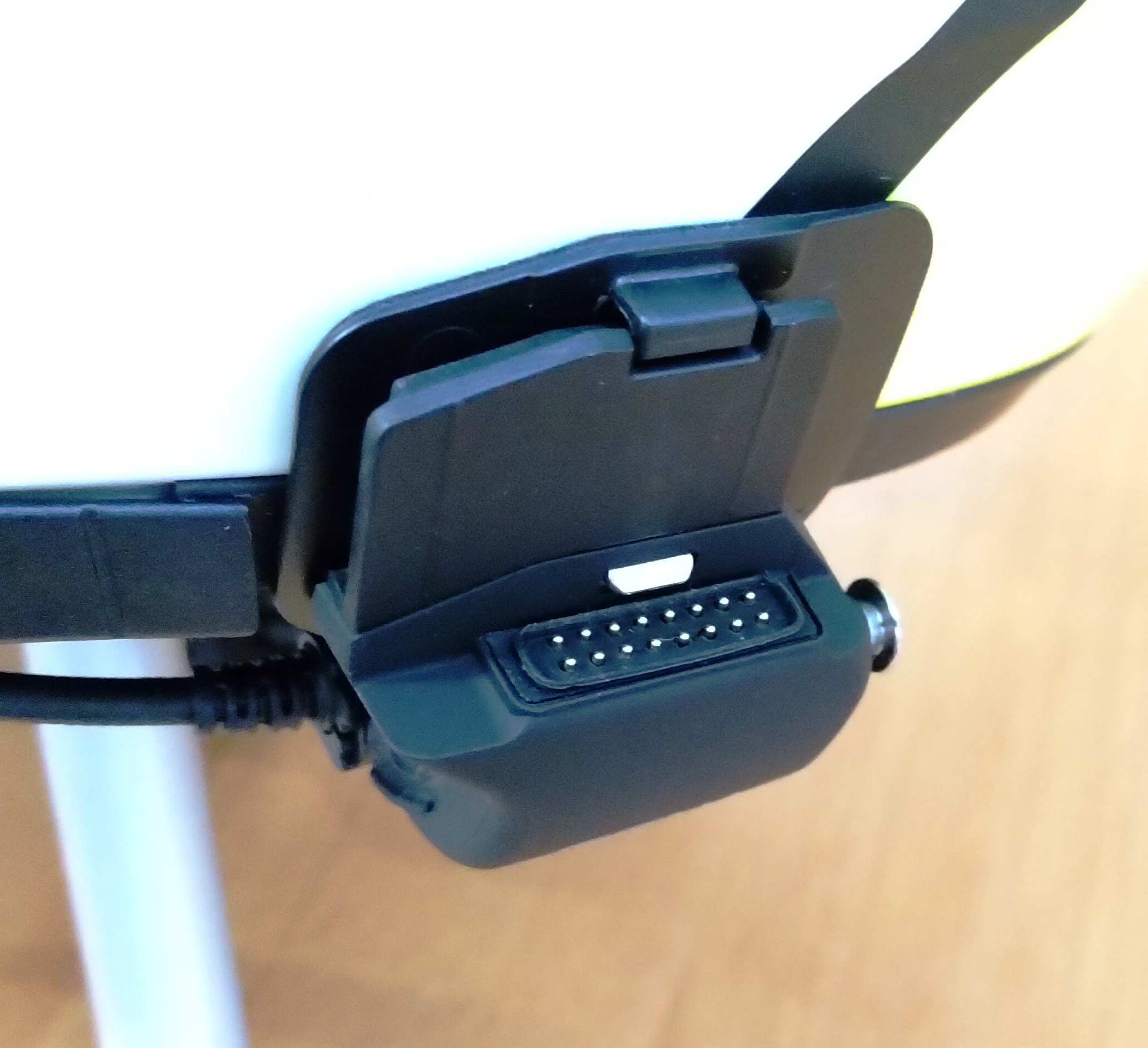 * The flip up MESH antenna. Difficult to flip up using rain or cold weather gloves. The antenna should be incorporated into the wiring harness and routed inside the helmet for a permanent configuration.