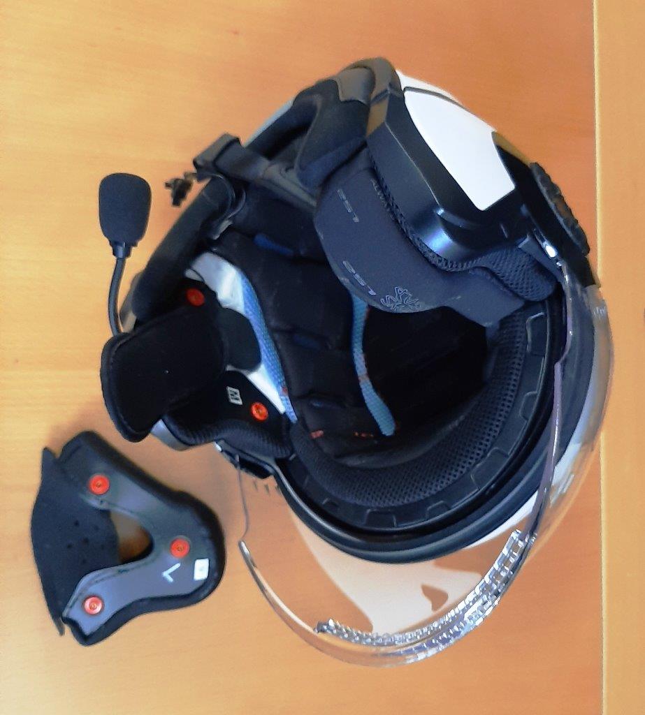 This late edition of a superseded helmet is on the test helmet shelf, although its 2XL sizing has its limited use limited to the original owner. It’s not as modular regarding interior pieces, but it’s still quite easy to work on regarding BT helmet communication systems.
