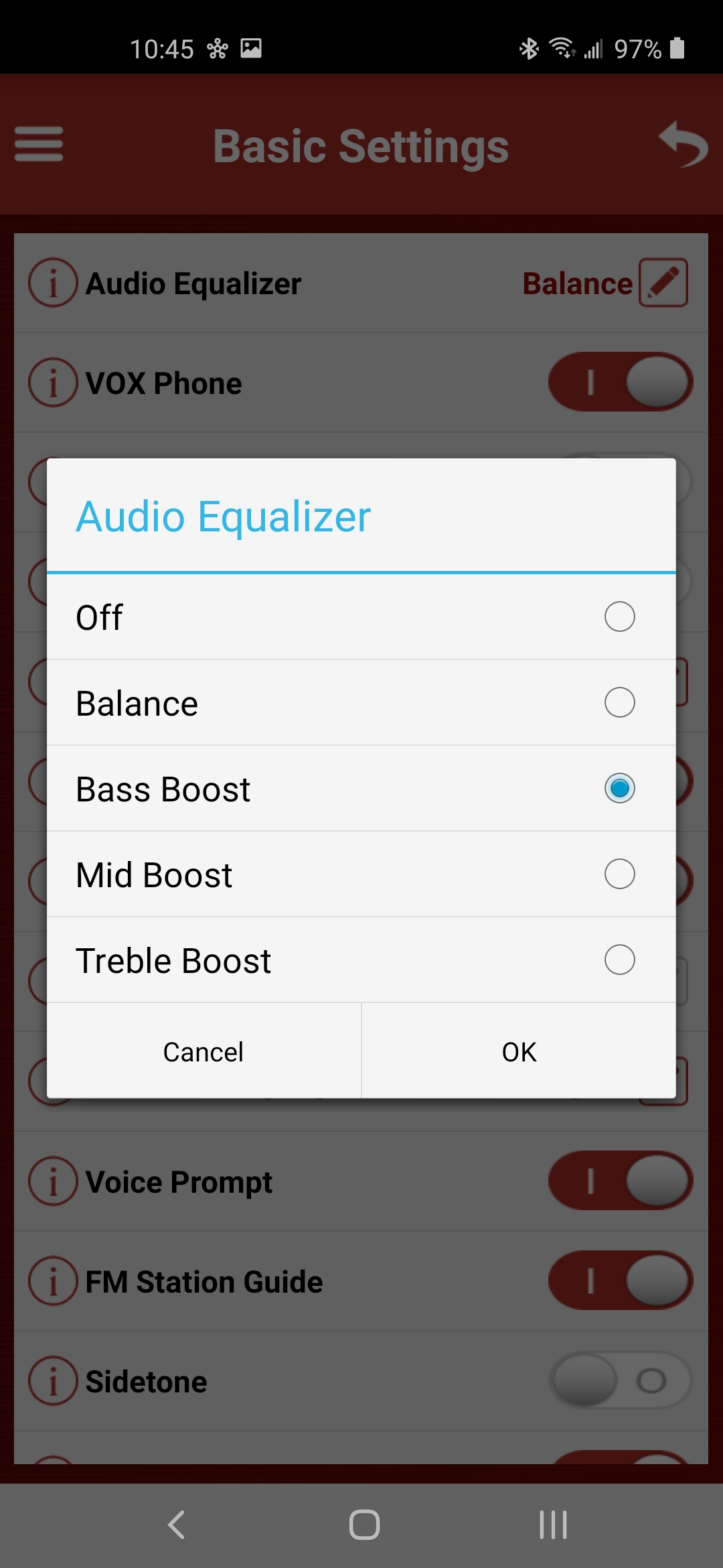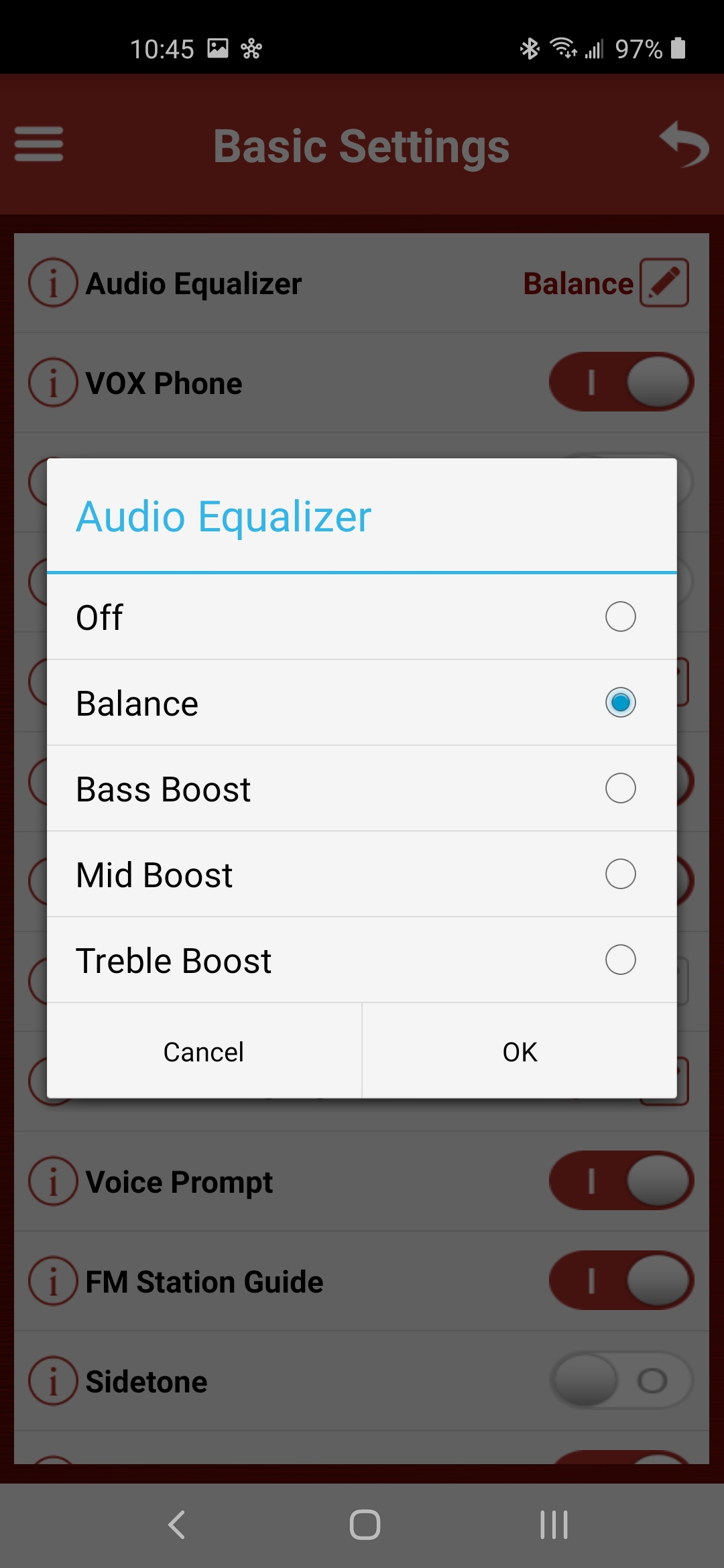 Sena 5S Bluetooth System audio equalizer screen