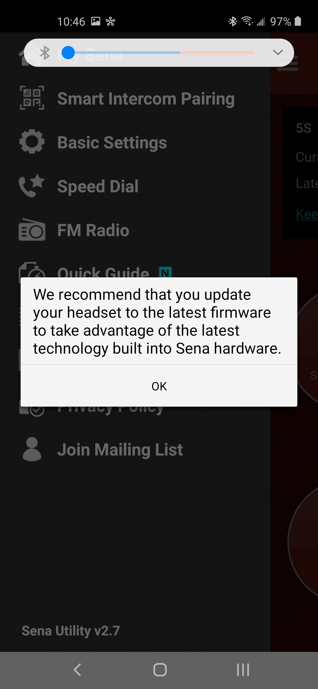 Sena 5S Bluetooth System management software screen