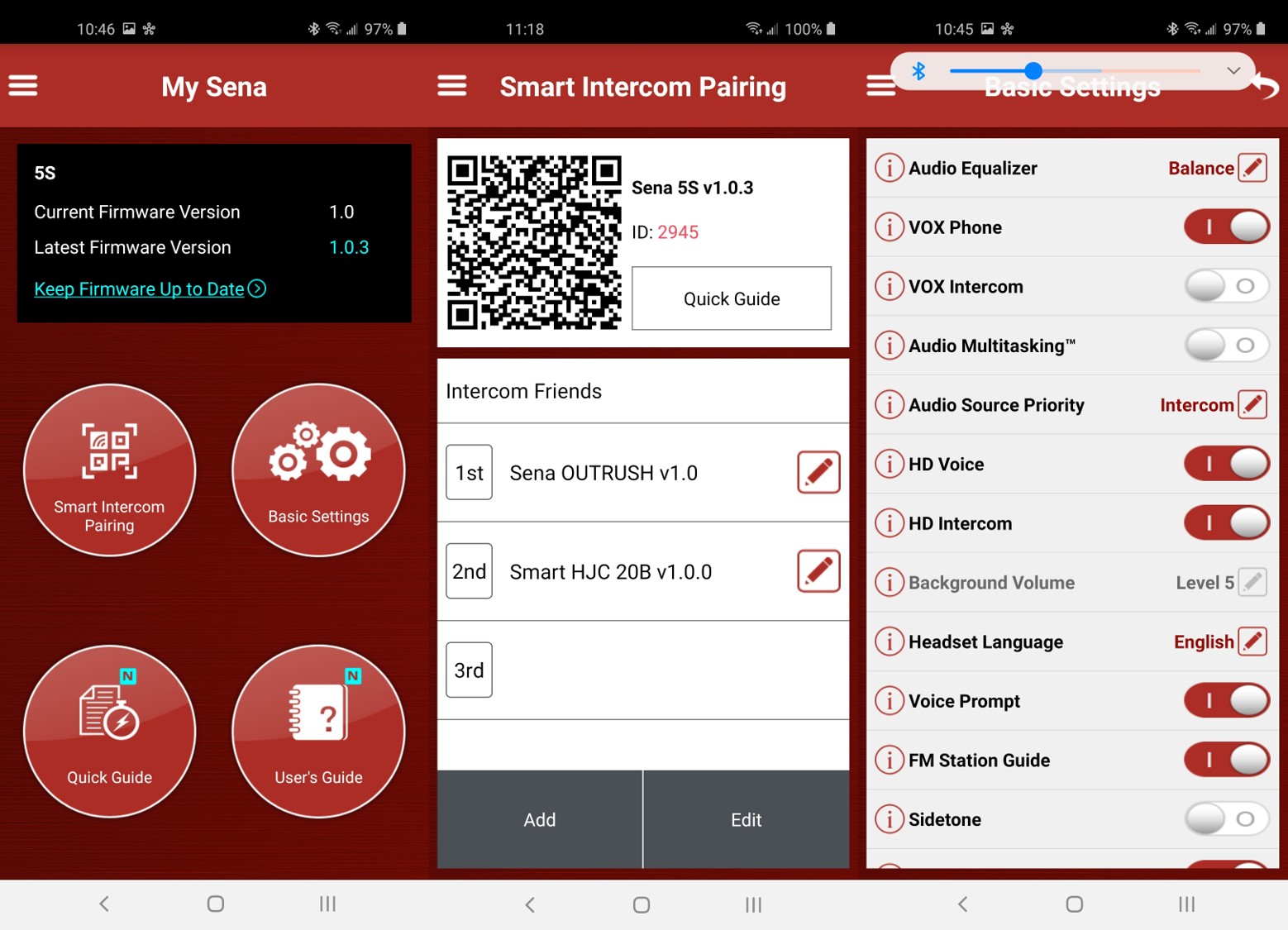 Just got my very lightly used Sena 5S dual units updated and installed in my (2) primary helmets. I gotta say I’m quite impressed. I use my comm’s primarily for music and answering an occasional phone call. I fiddled with the audio EQ and settled on treble boost. This gives the best results when out on the road, traveling at freeway speeds. Really like the voice prompt features.