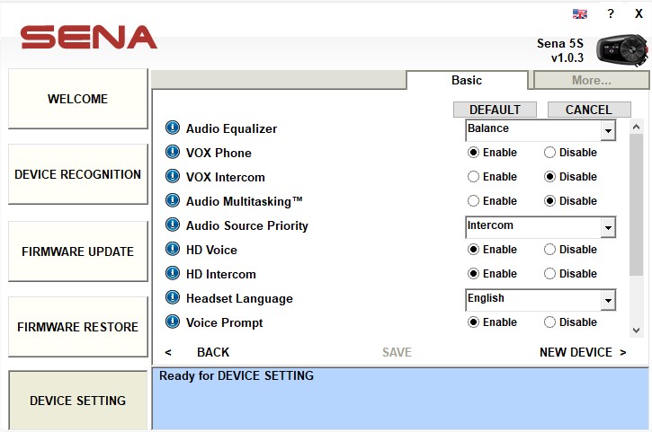 The Sena 5S features provided under the Sena Utility App allow the user to do almost anything, including Smart Intercom Pairing, select and scroll through all the Basic Settings available, including Audio EQ and multitasking or access either the Quick Guide or User’s Guide.