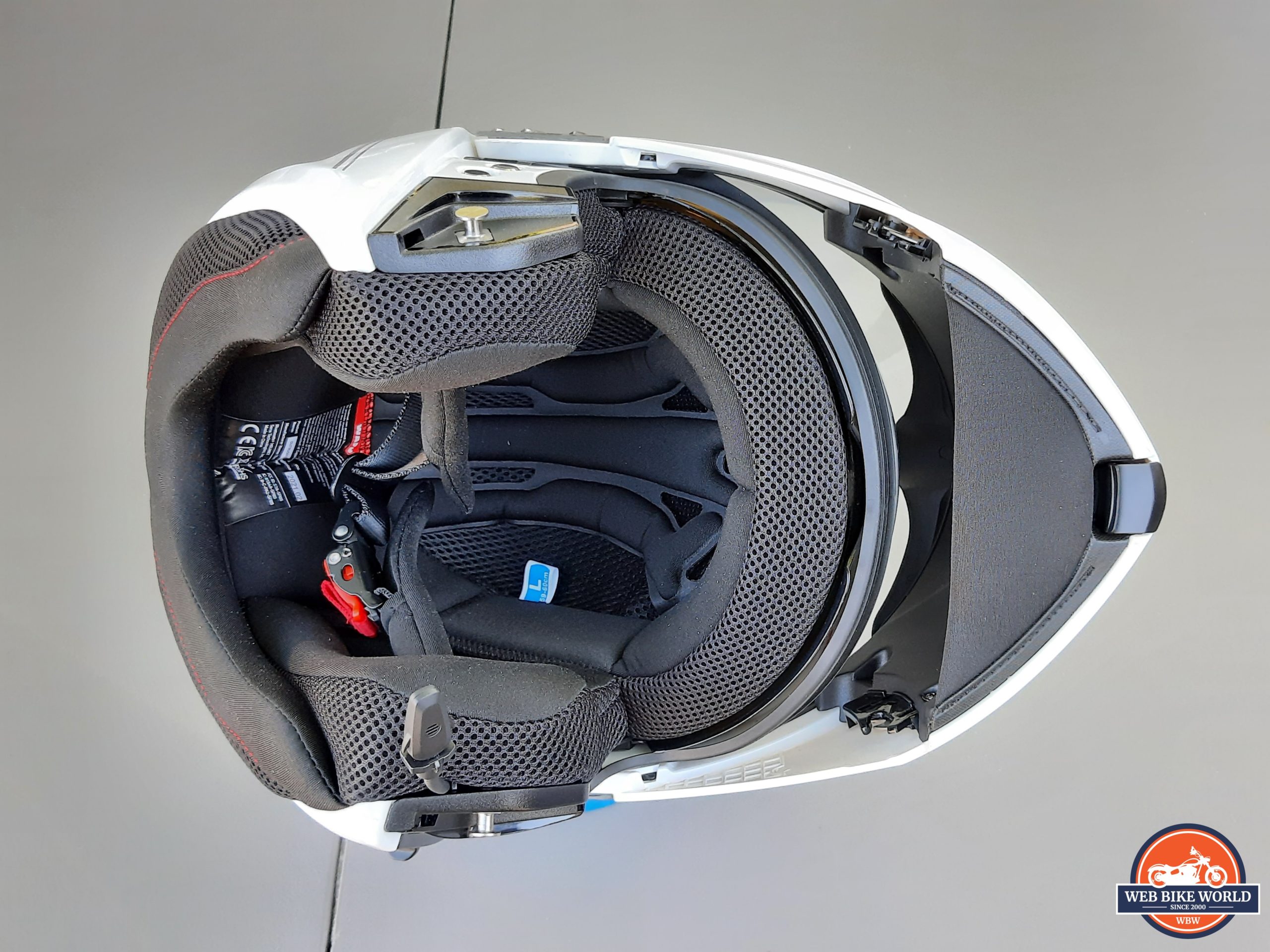 Helmet Comfort Liner – the lining or comfort zone in the Sena Outrush R is multipart and quite plush overall. The left and right cheeks pads are thick and very supportive but their shaping may not be optimal for everyone, although to be fair, the units here are still adapting to the occupants and some original pressure observations are disappearing.