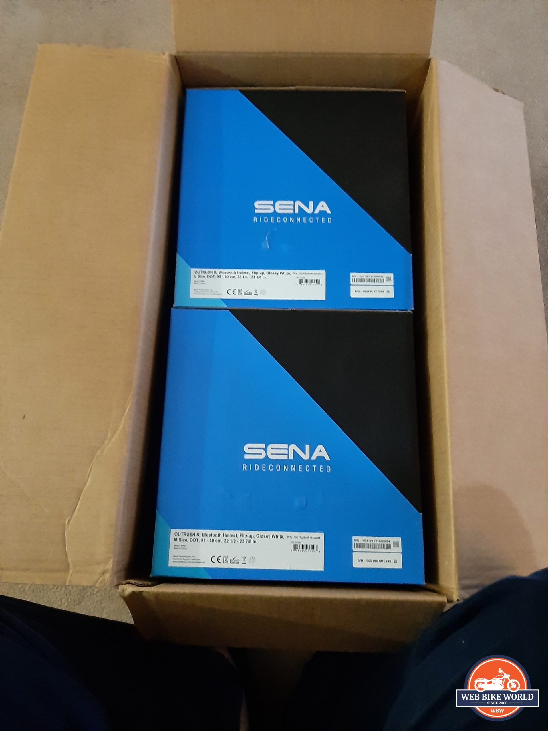 In already identifying that two, well actually three helmets were provided for this review, it is understandable that the package received from Sena was larger than usual; just right-sized for the two Outrush R helmet boxes.