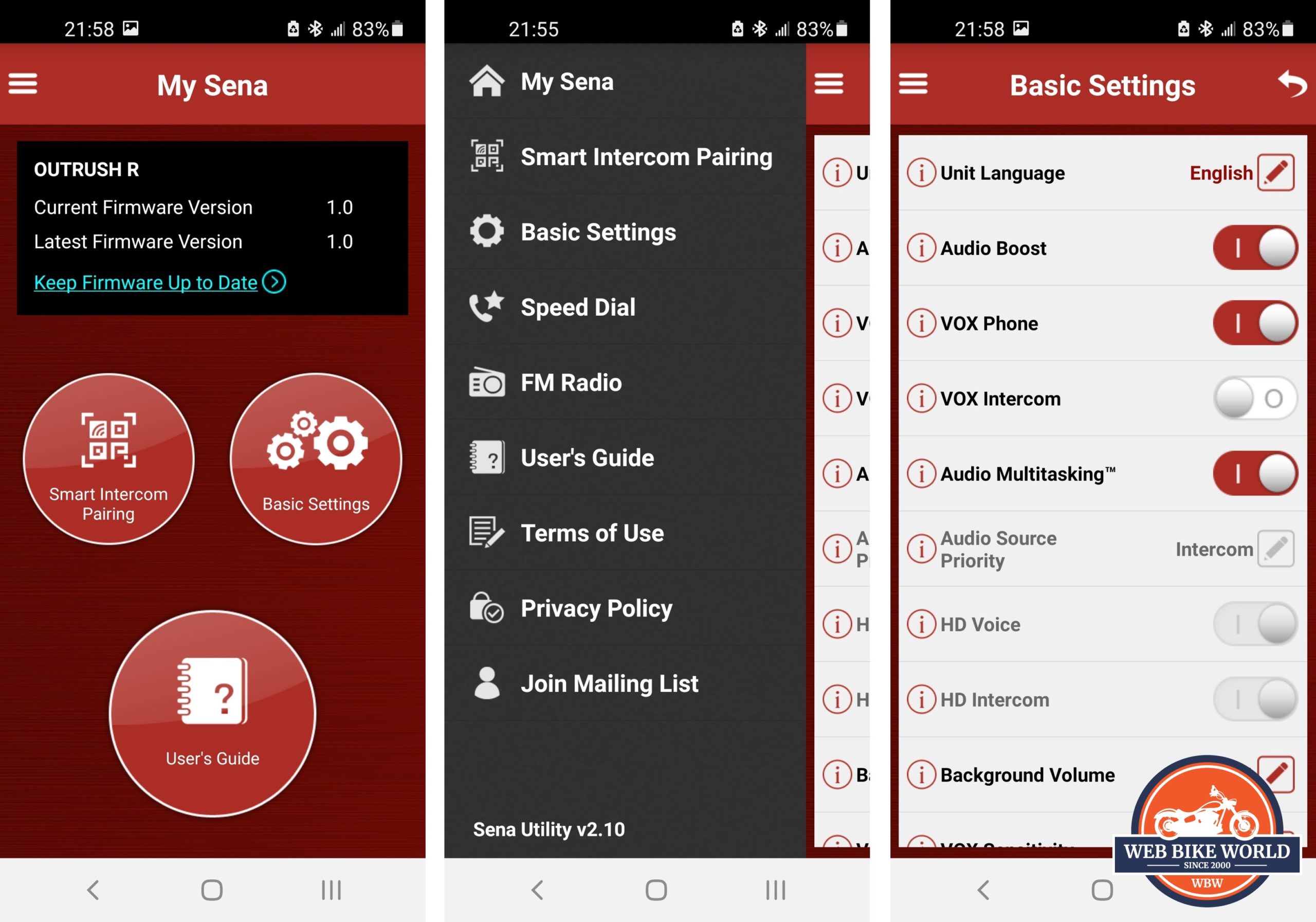 Sena Device Manager & Sena Utility App Interfaces